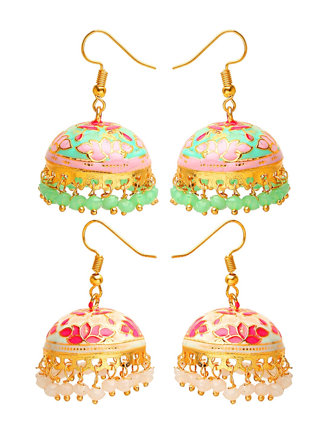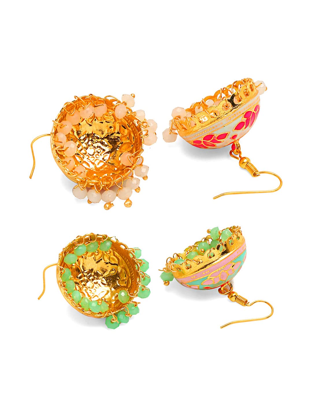 Meenakari Jumka Earrings with Ethnic Design Gold Plated Traditional Beads Combo of 2 pair for Women and Girls