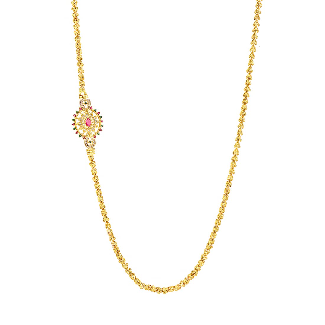 Mugappu Chain for Women American Diamond Chain Necklace Gold Plated Floral Mugappu Mopu Chain Thali Chain with side Mugappu for Women.