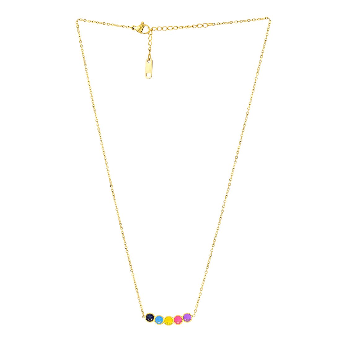 Yellow Chimes Necklace for Women and Girls Fashion Golden Necklace for Women Western | Stainless Steel Gold Plated Smiley Face Pendant Chain Necklace for Girls | Birthday Gift for Girls & Women