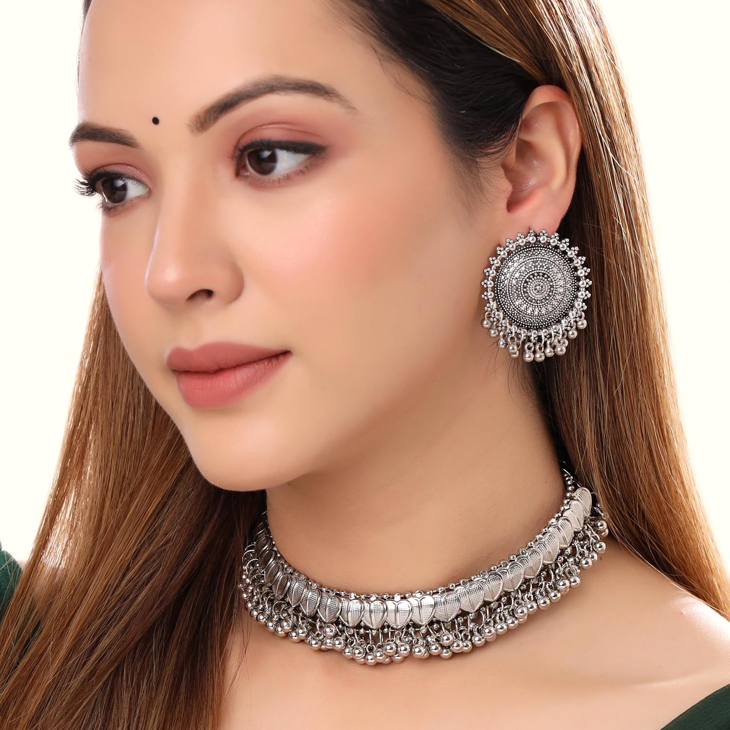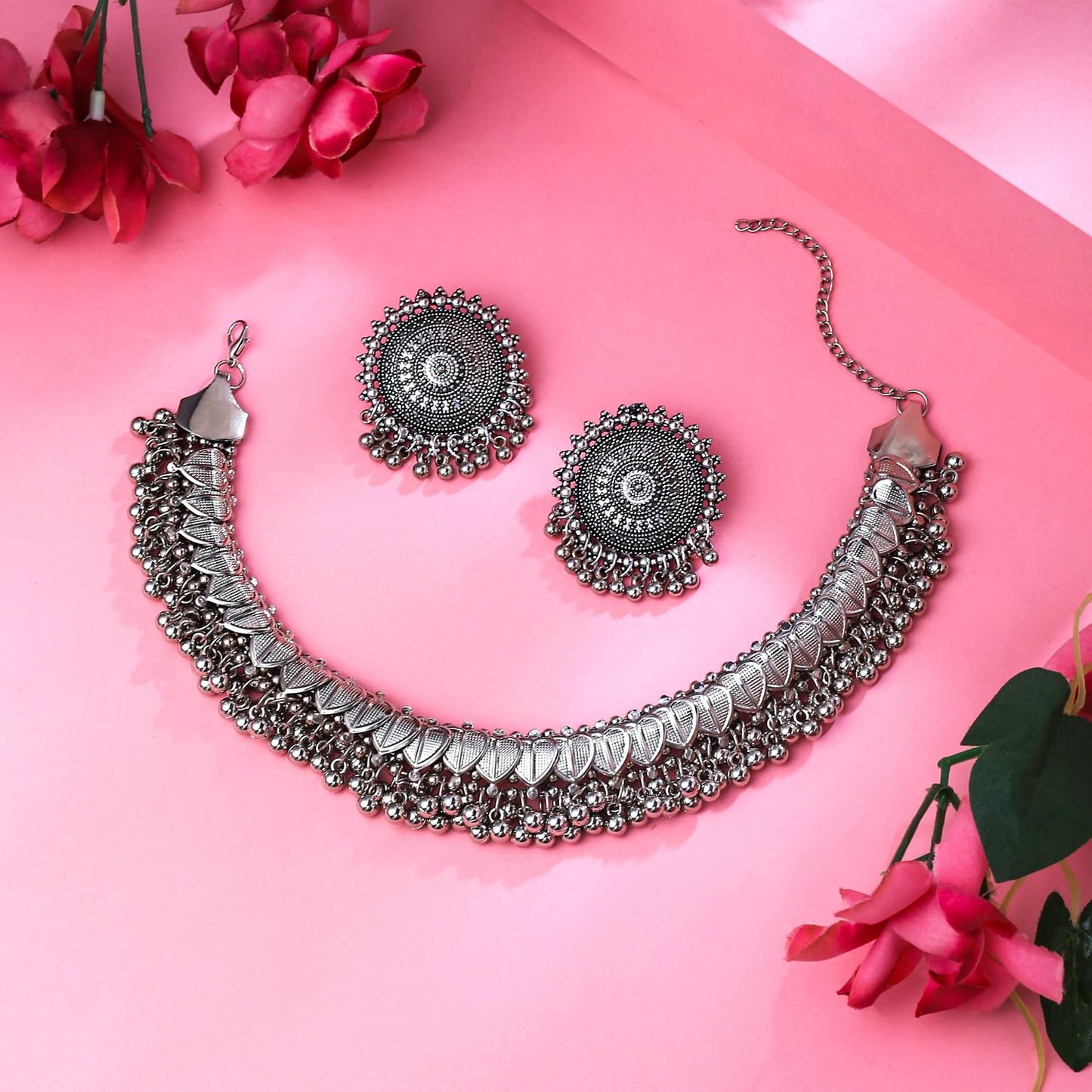 Necklace for Women and Girls Silver Oxidised Necklace for Women | Gungroo Designed Oxidised Silver Necklace for women | Birthday Gift for girls and women Anniversary Gift for Wife