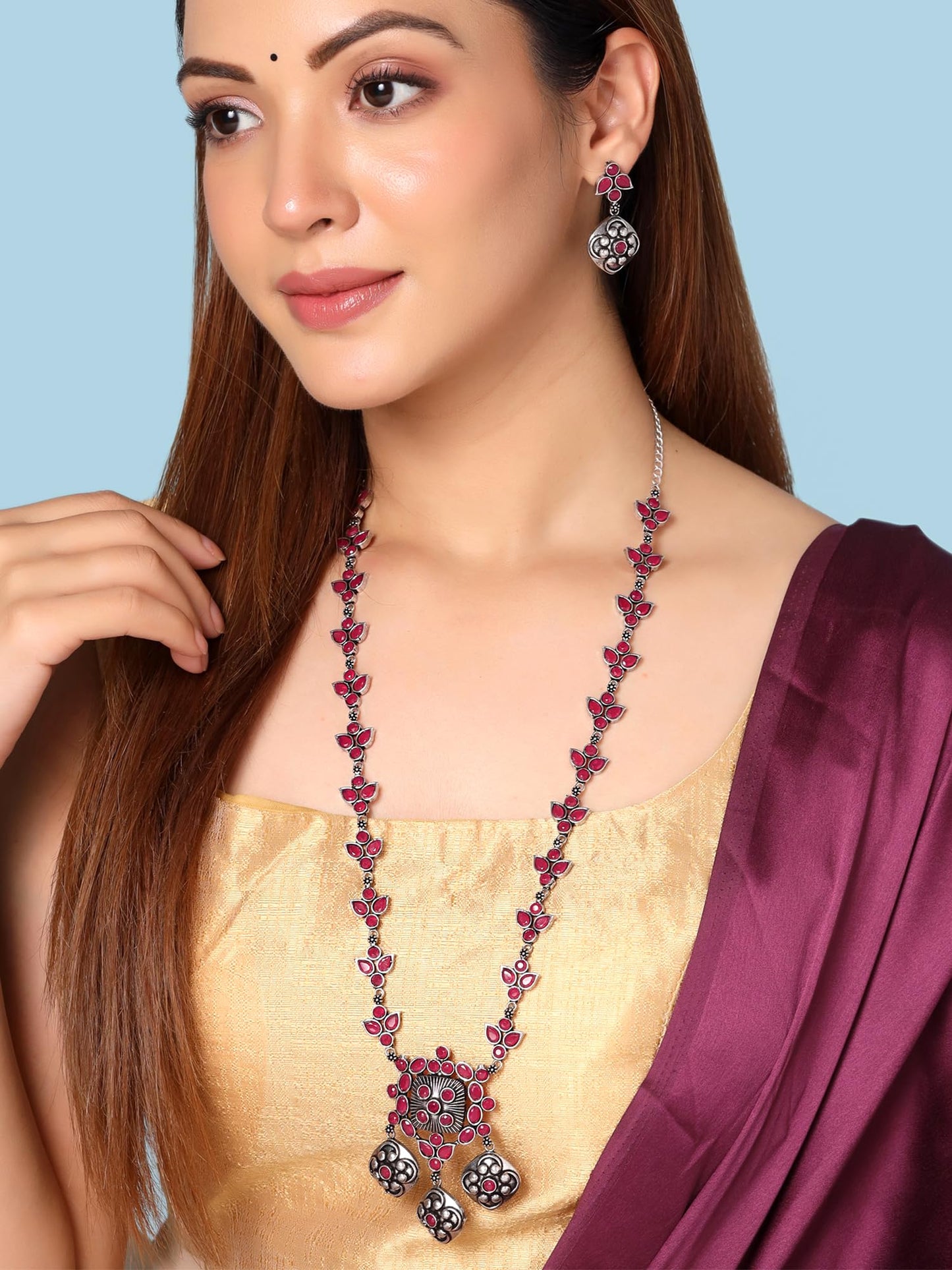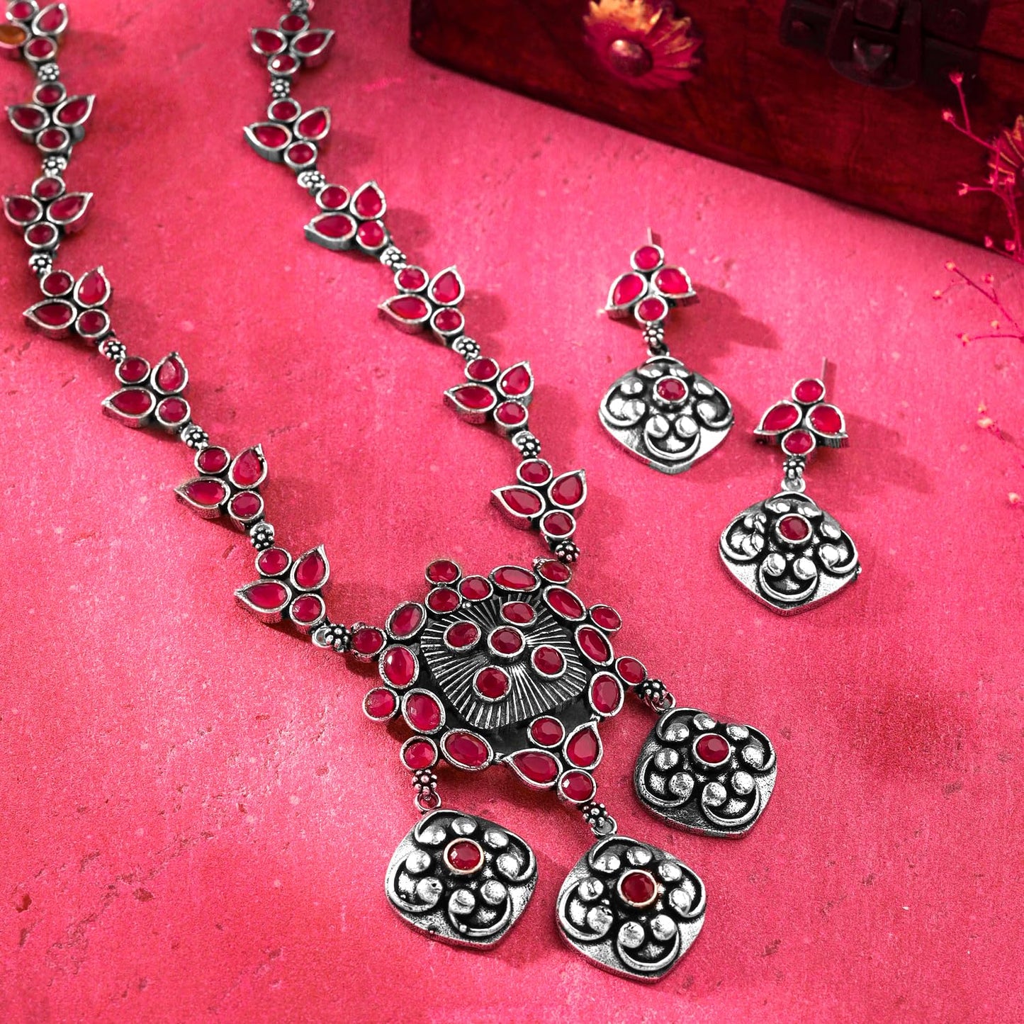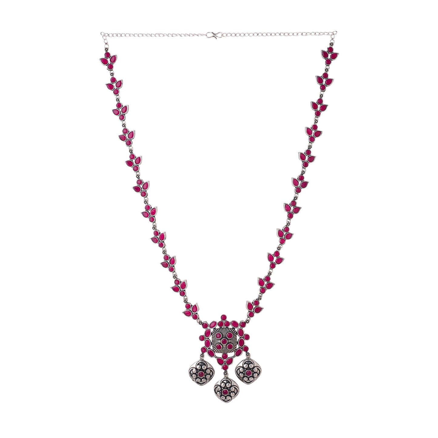 Necklace for Women and Girls Silver Oxidised Necklace for Women | Stone Studded Oxidised Silver Necklace for women | Birthday Gift for girls and women Anniversary Gift for Wife