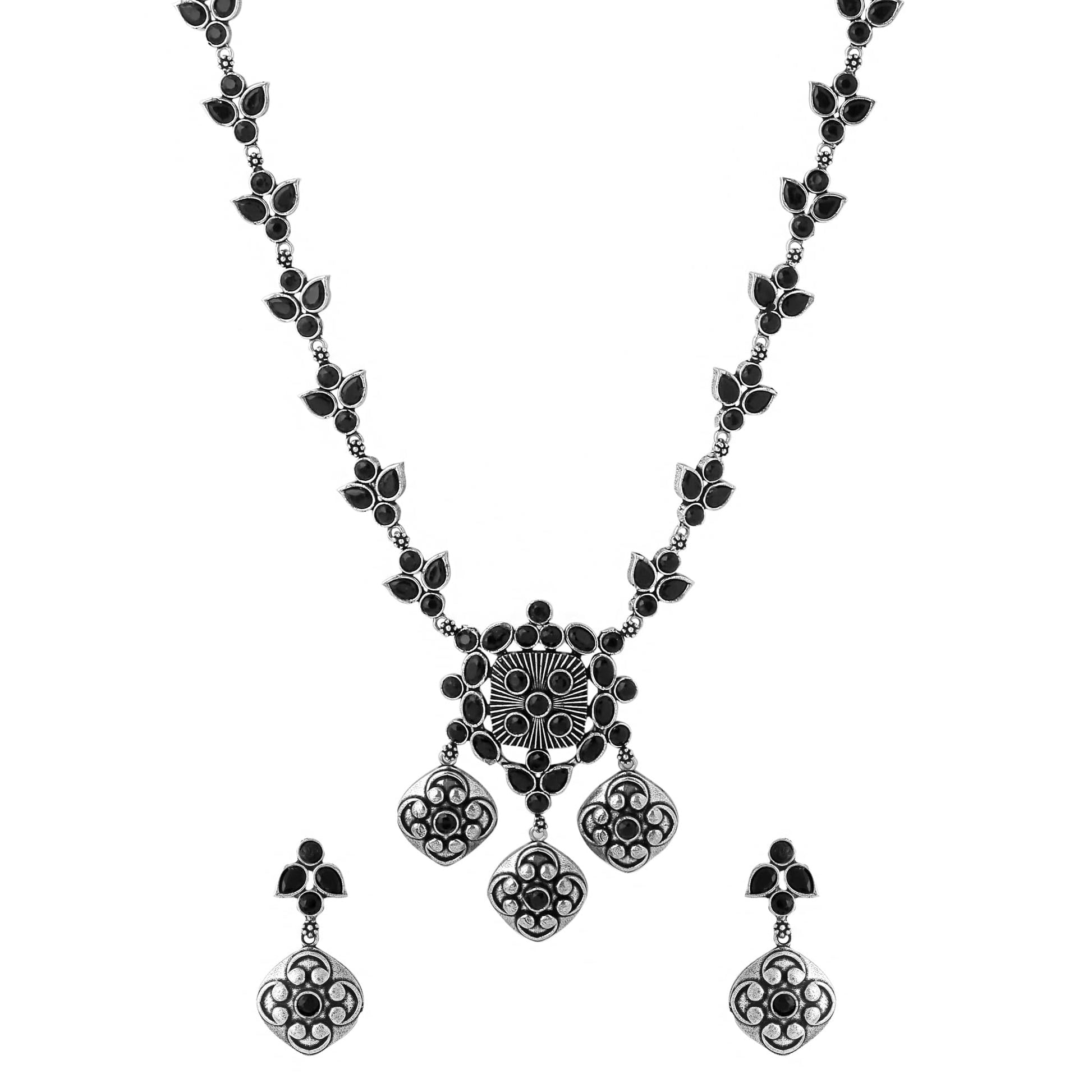 Necklace for Women and Girls Silver Oxidised Necklace for Women | Stone Studded Oxidised Silver Necklace for women | Birthday Gift for girls and women Anniversary Gift for Wife