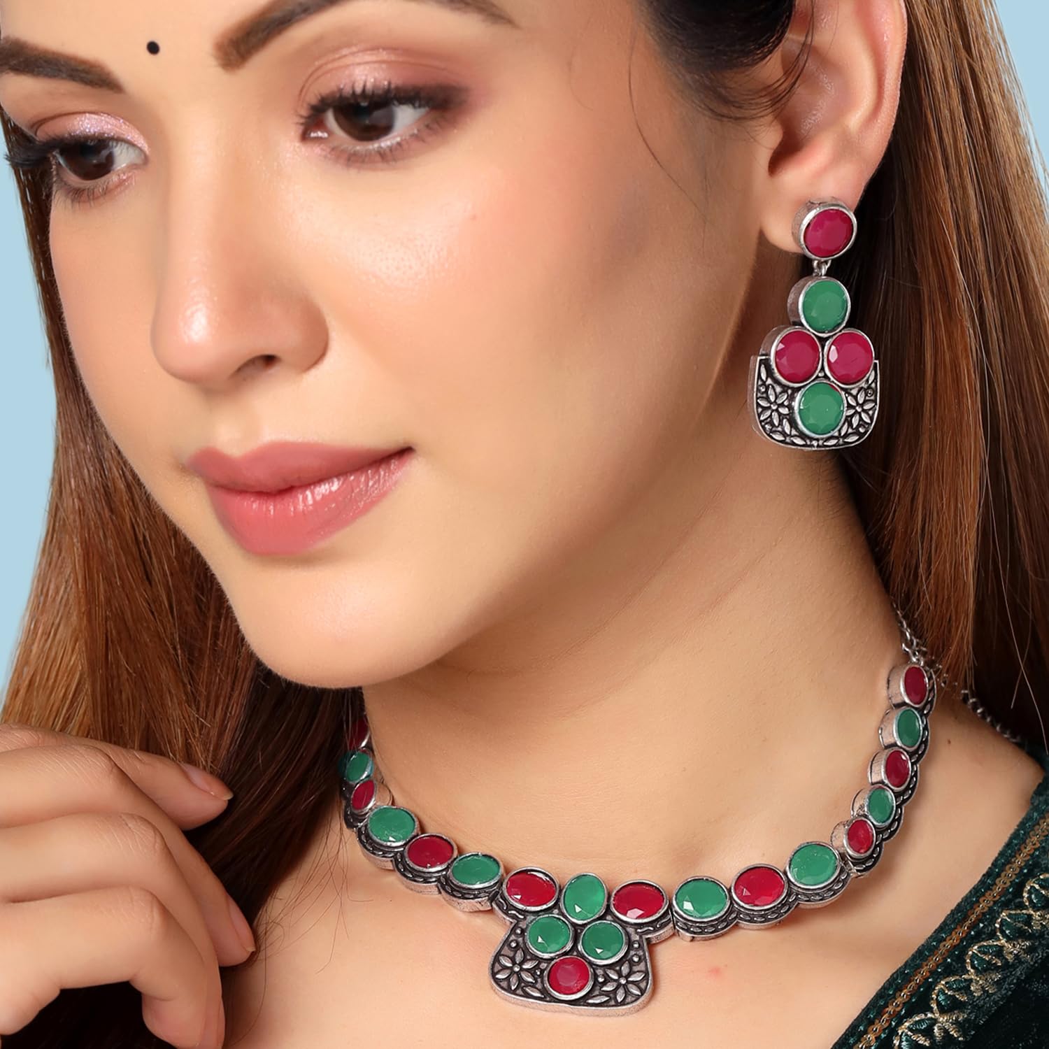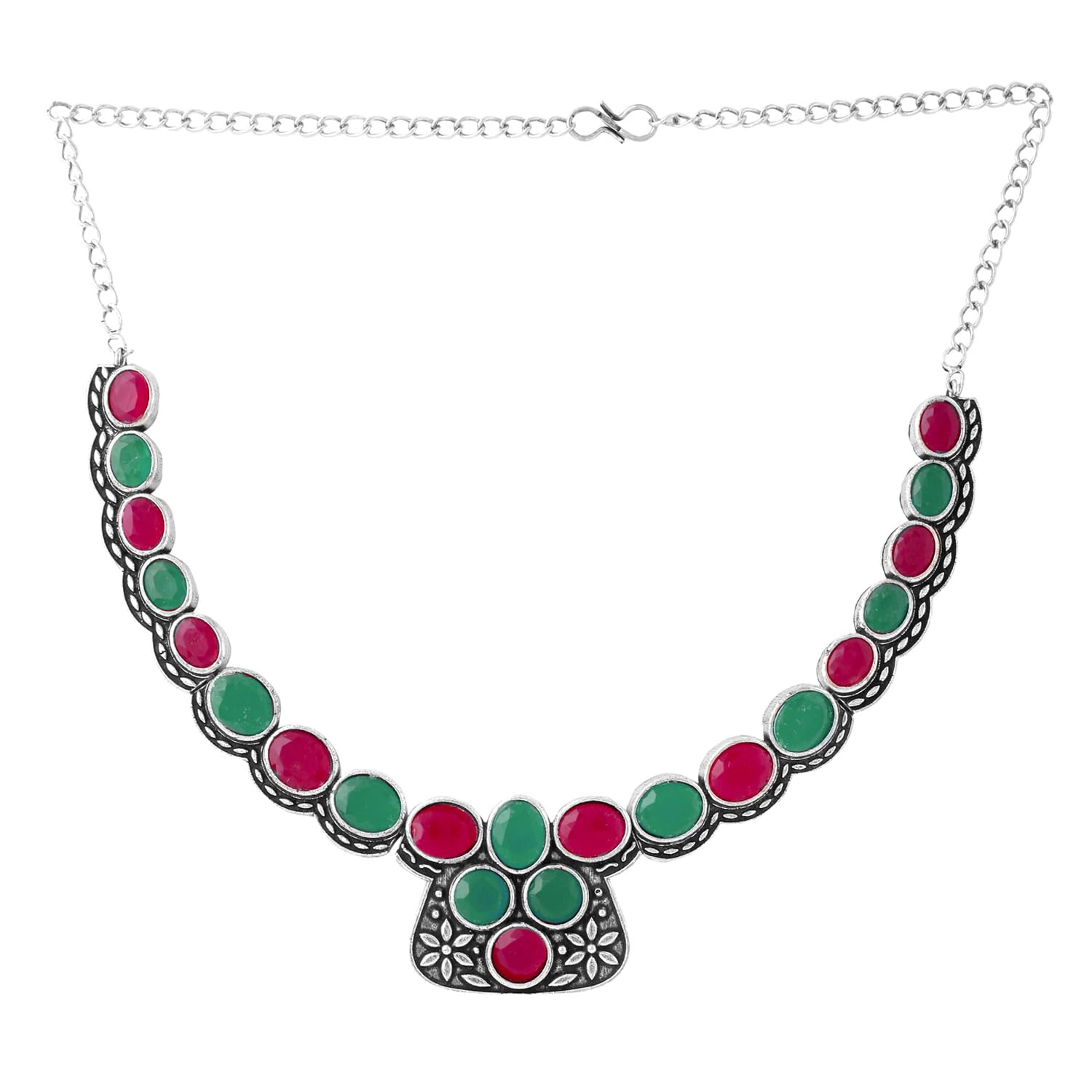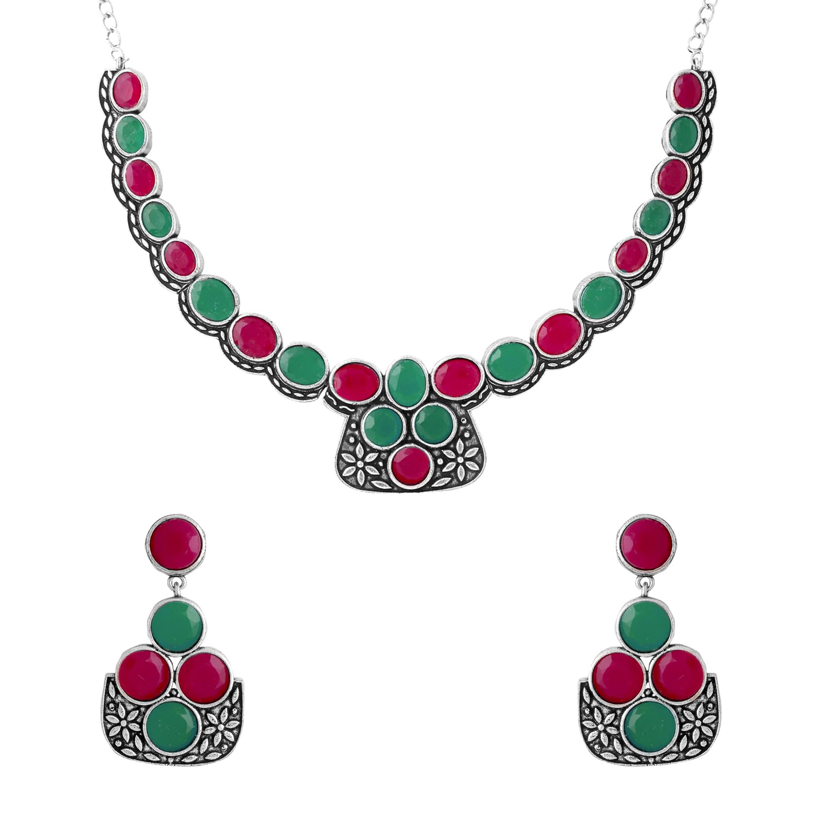 - Style Guide: For an elegant and understated style, wear silver oxidised jewellery with a plain shirt, or add a hint of glitz to your evening appearance with a saree and our silver oxidised necklace set.