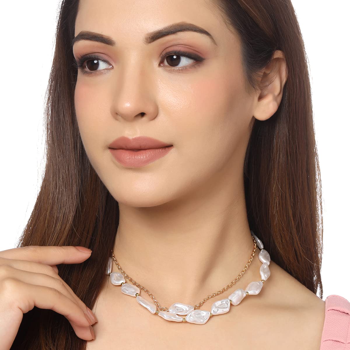 - Gold Toned Multilayer Design: Crafted with a beautiful gold finish, this necklace exudes a contemporary charm that complements any outfit.