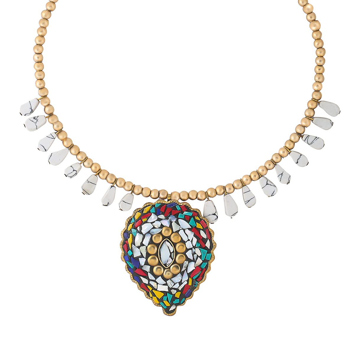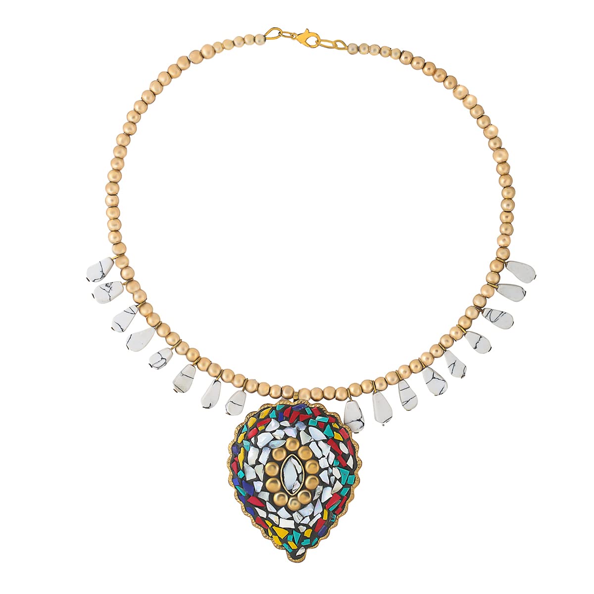 Indulge in the captivating beauty of the Yellow Chimes Necklace, a stunning accessory designed for the modern woman. This exquisite necklace features a multicolor Tibetan designed lac pendant that effortlessly combines tradition with contemporary style.