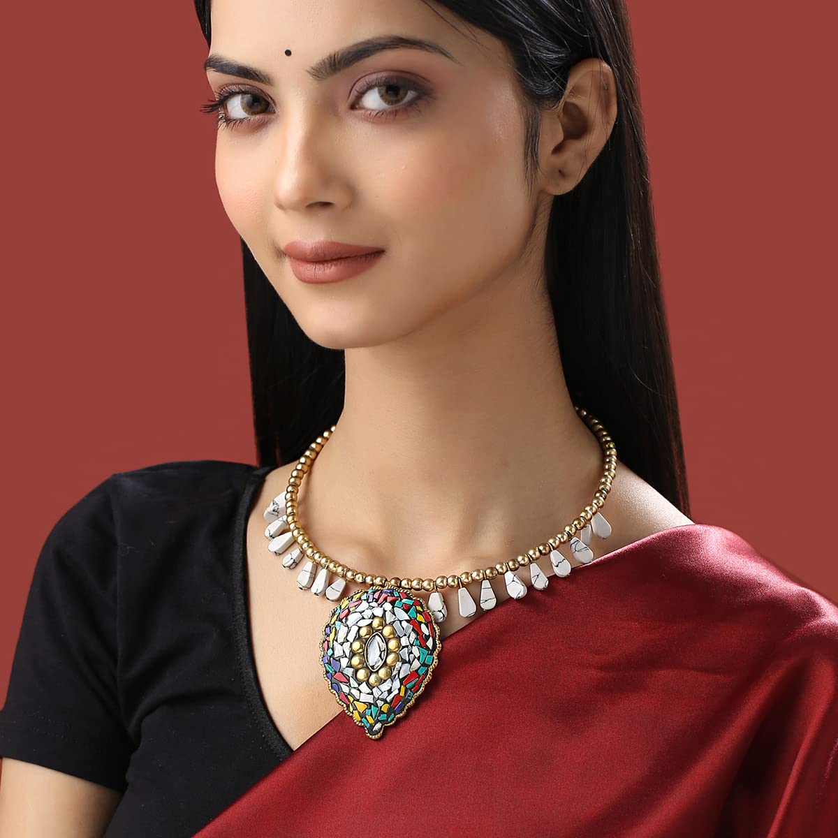 Necklace for Women Lac necklaces for Women | Multicolor Tibetian Designed Lac Pendant Necklace | Birthday Gift foe Girls and Women Anniversary Gift for Wife
