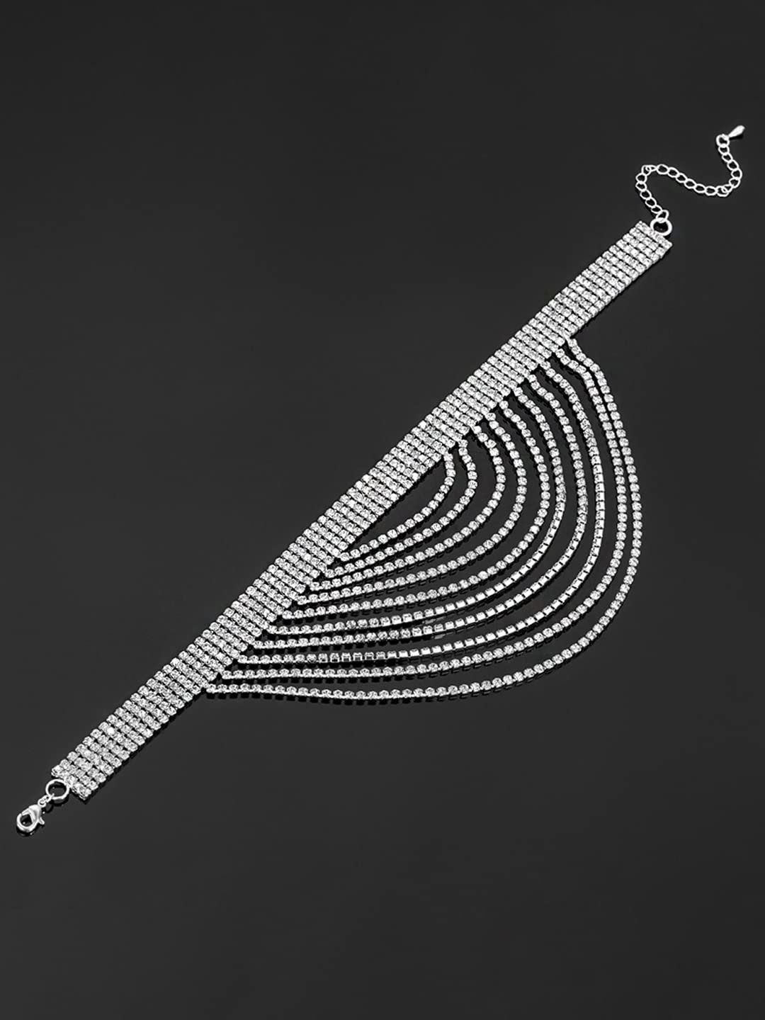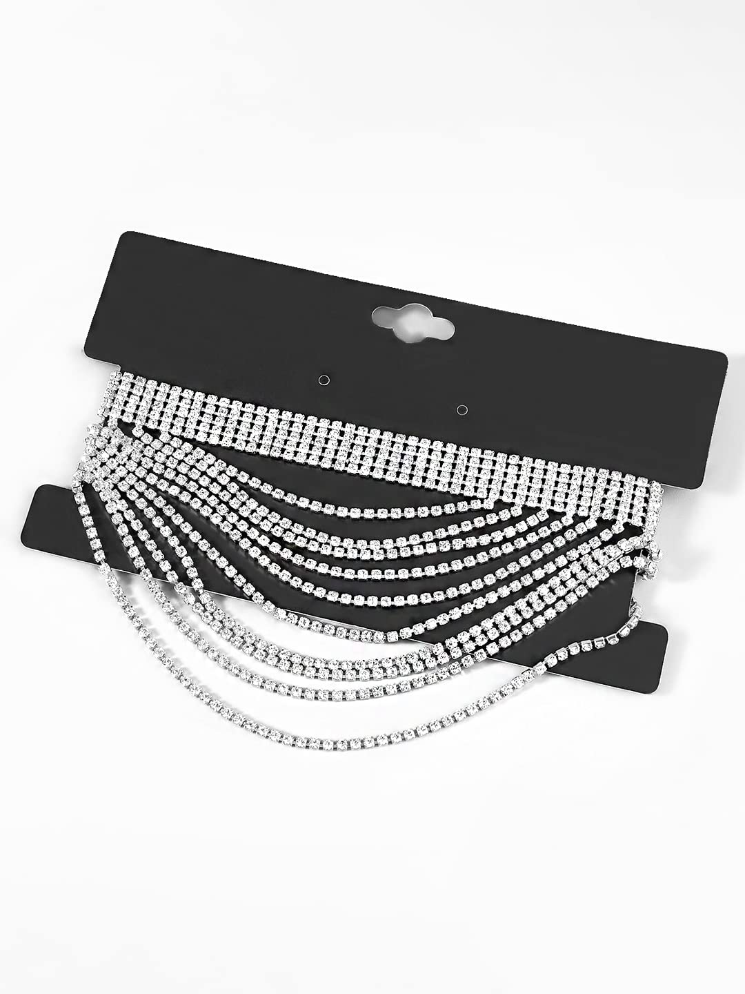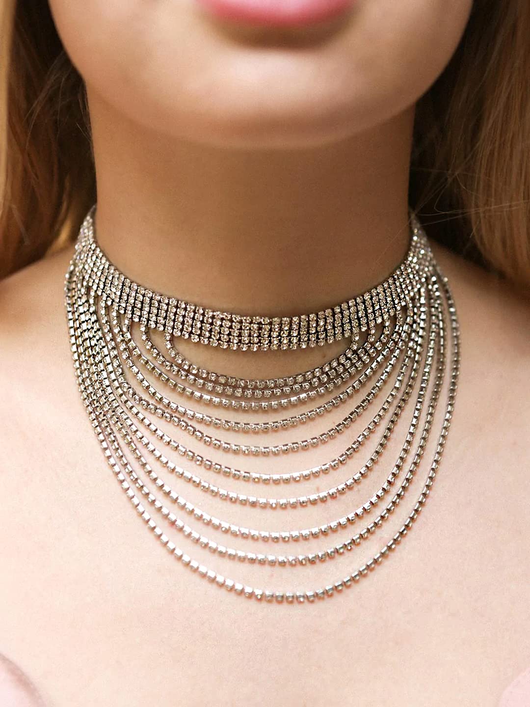Necklace for Women and Girls Silver Choker Necklace for Women Western | Multilayer Rhinestone Tassle Statement Choker Necklace | Birthday Gift for Girls & Women Anniversary Gift for Wife