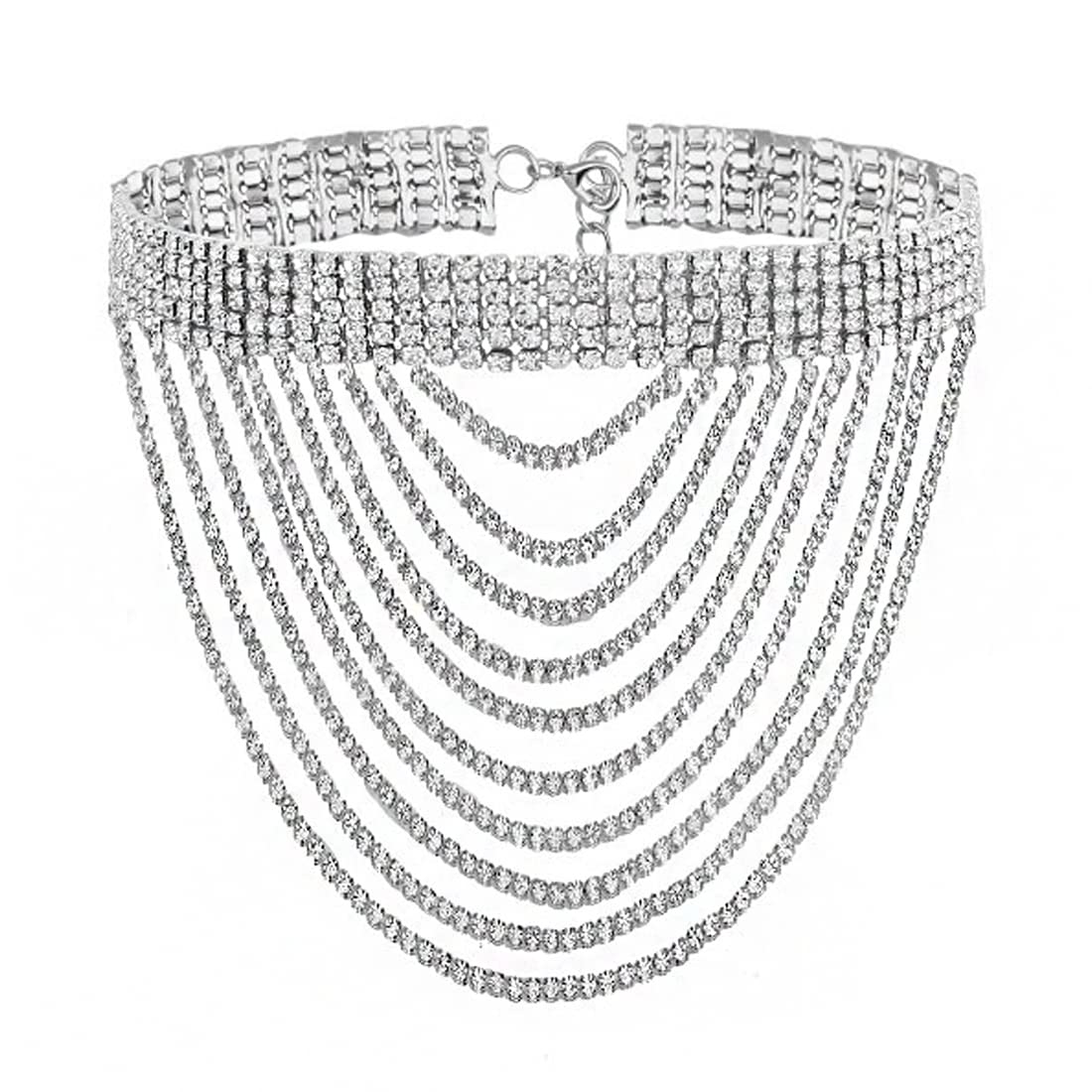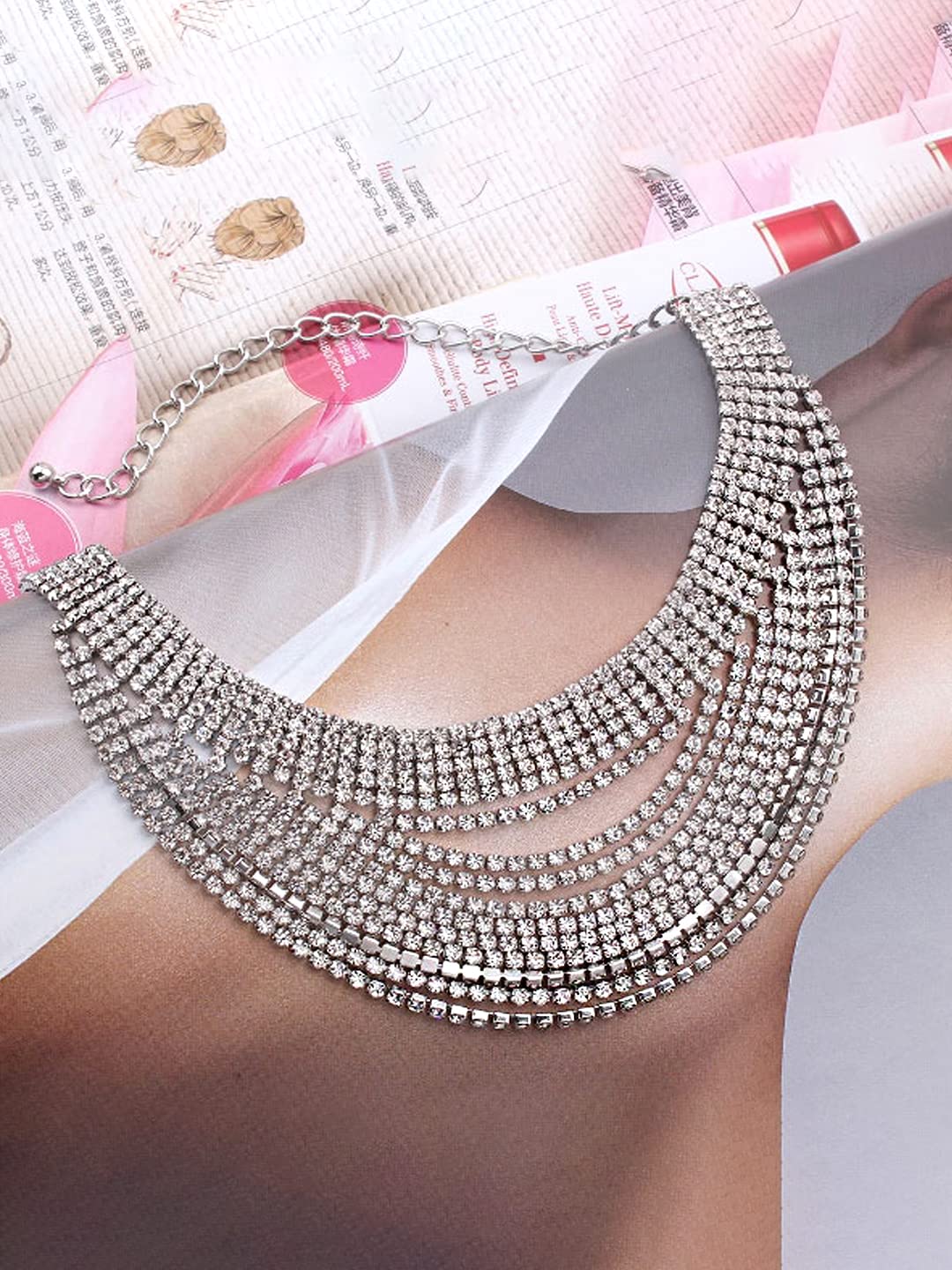 - New and high in Trend, Rhodium Plated Crystal Choker Necklace for Women embellish your neck,shoulder and back more sexy and charming and bring those gorgeous looks for you.Dainty shiny multilayer rhinestone tassle statement choker necklace sparkly crystal collar necklaces fashion.Our Product is perfect for valentines Anniversary Birthday gift for girlfriend and Wife.