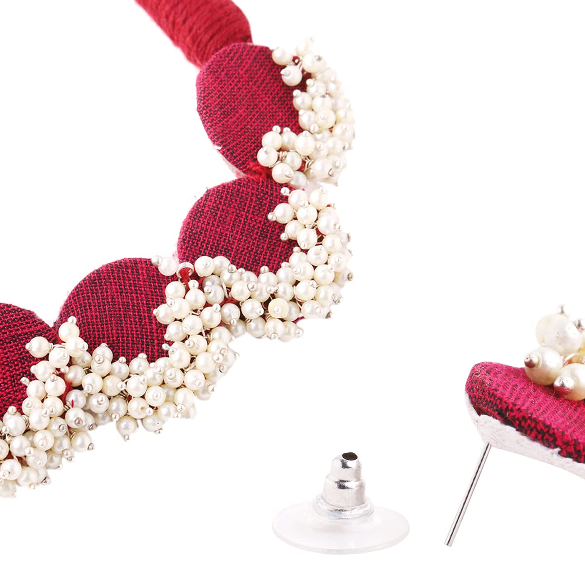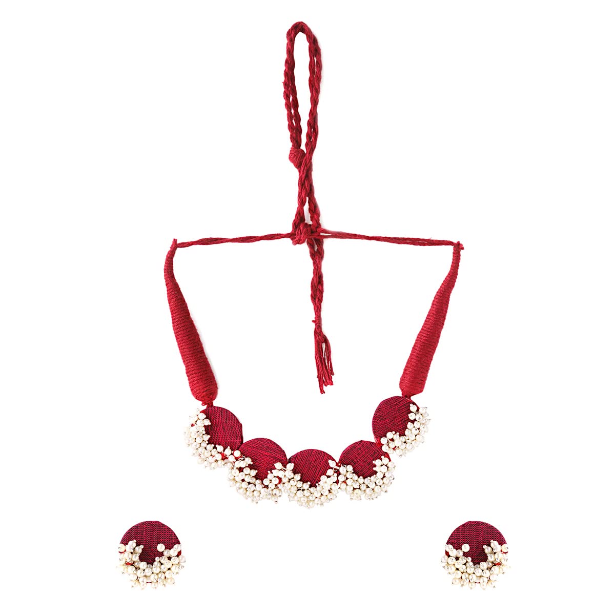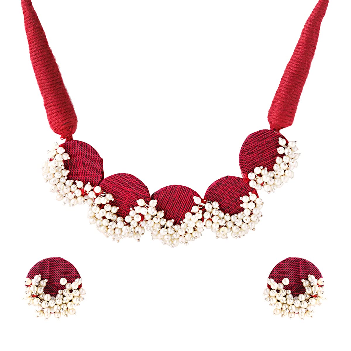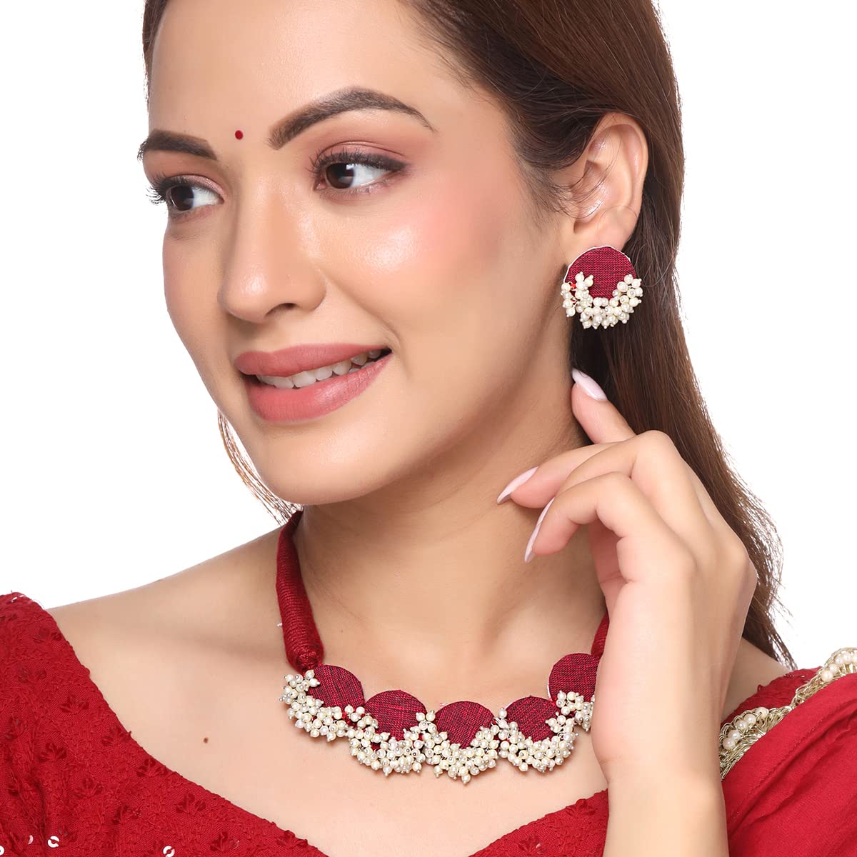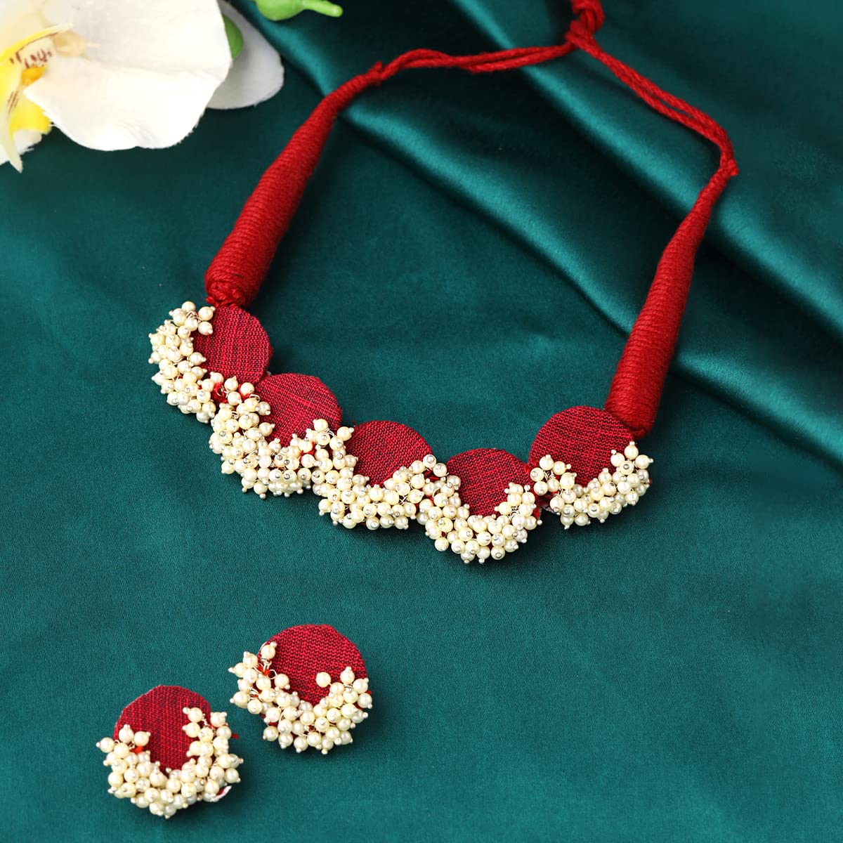 Necklace Set for Women and Girls Choker Set for Women | Circle Shaped Maroon Woven Wrapped Beads Studded Choker | Birthday Gift for girls & women Anniversary Gift for Wife