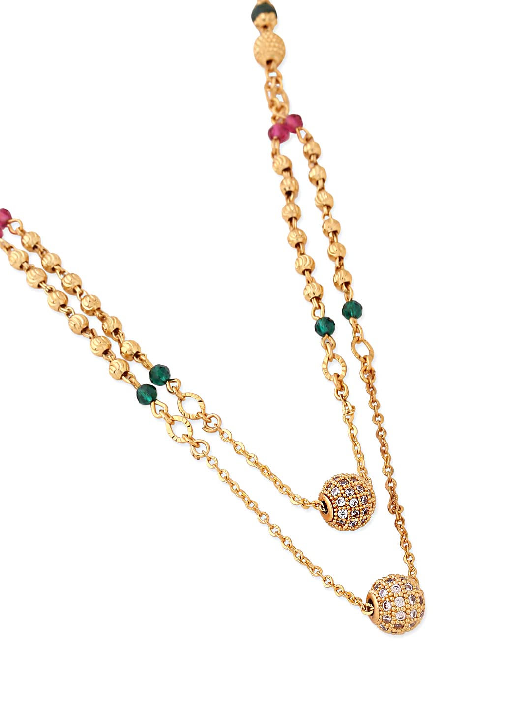 Elevate your style with the exquisite Yellow Chimes Necklace for Women. This stunning gold-toned necklace features a captivating combination of crystal-studded ball charms and delicate beads that create a layered look, perfect for any occasion.