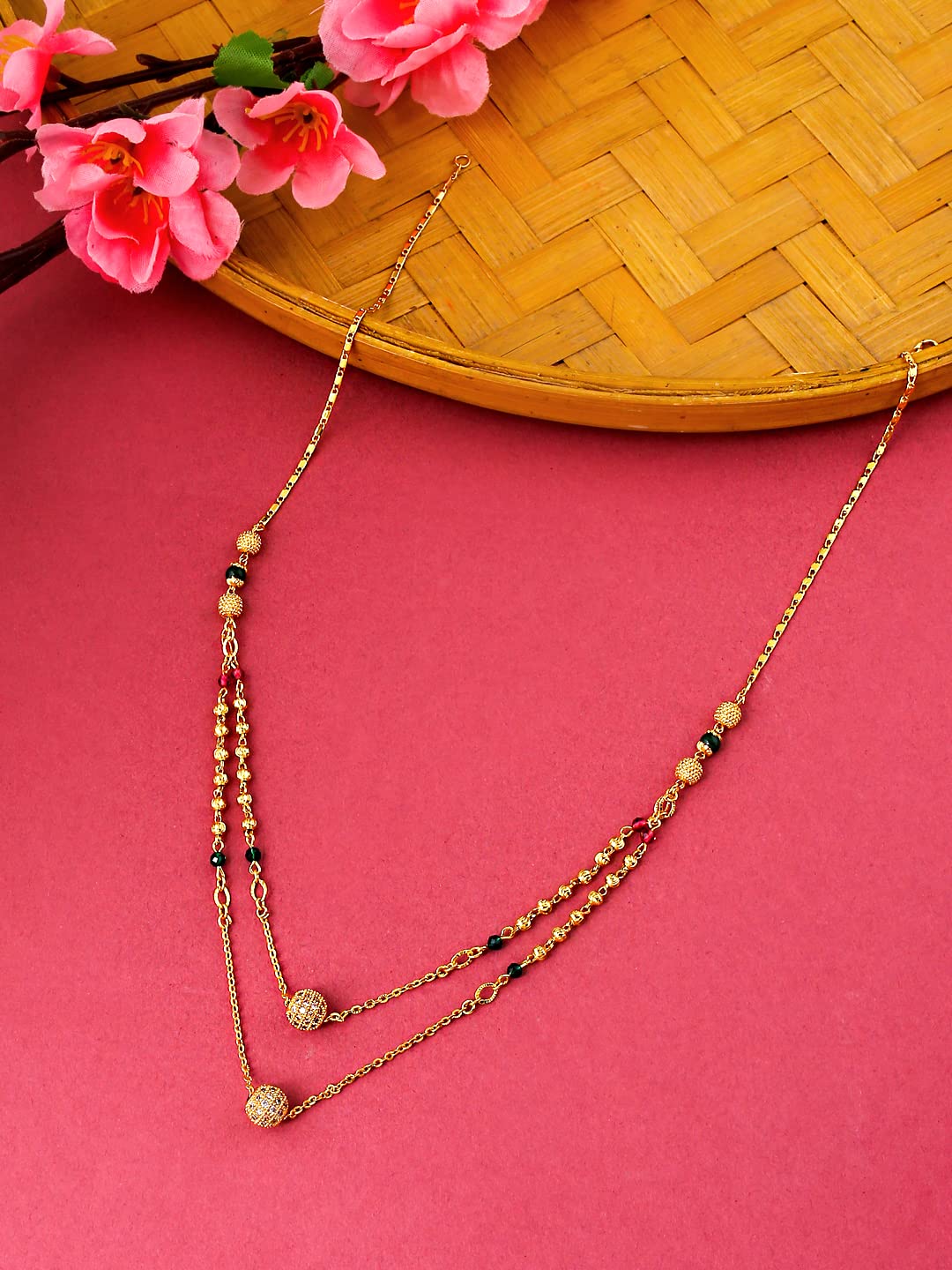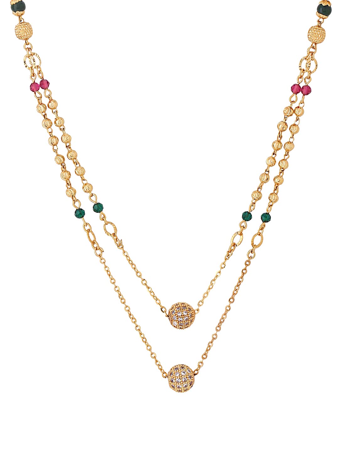 - Capture the essence of ethnic beauty with this Multilayered Necklace. This Necklace collection features Beads in a beautiful Gold finish type that add to its contemporary design.