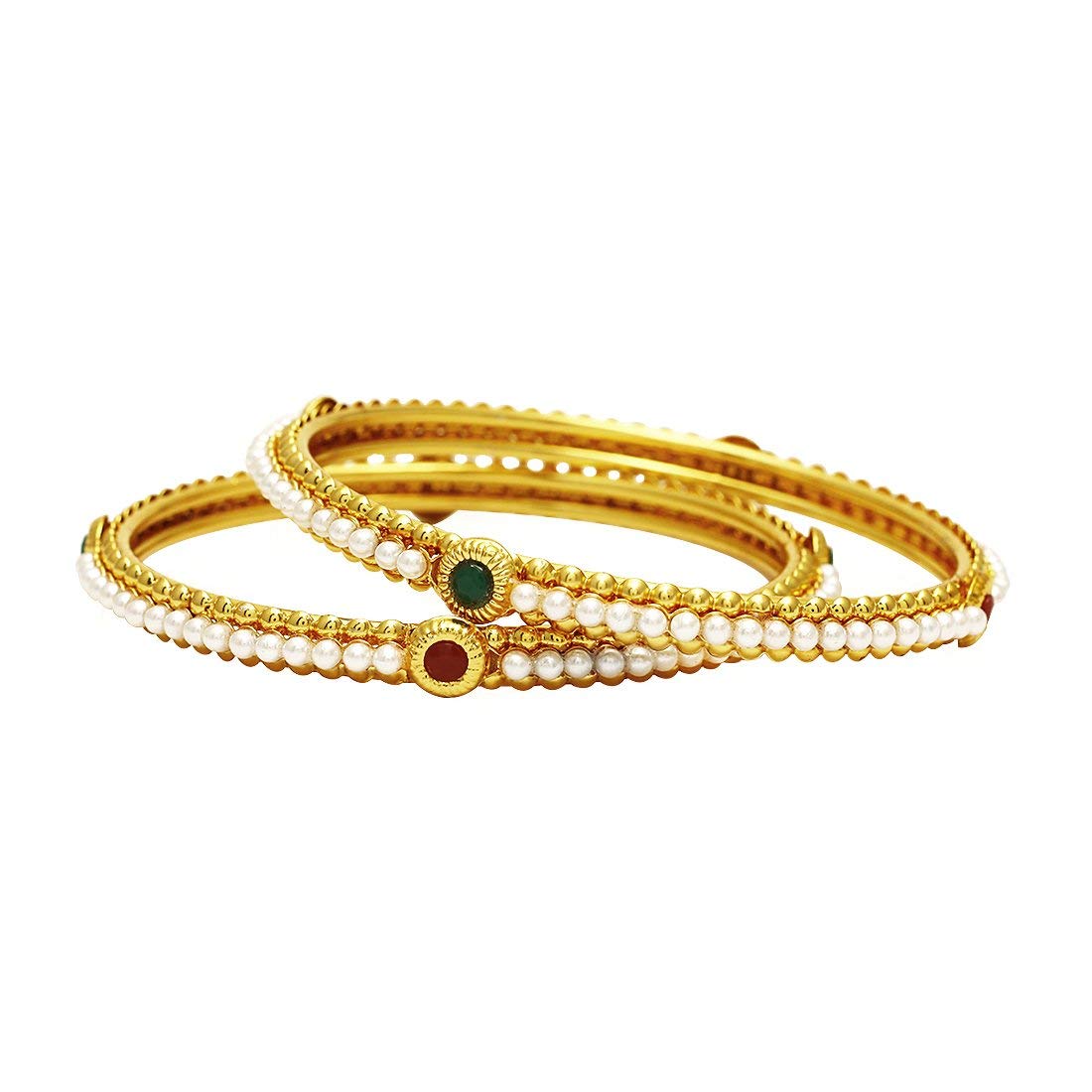 Yellow Chimes of 2 PCS Exclusive Delicate Antique Gold Plated Moti Pearl Traditional Bangles For Women And Girls (2.8)