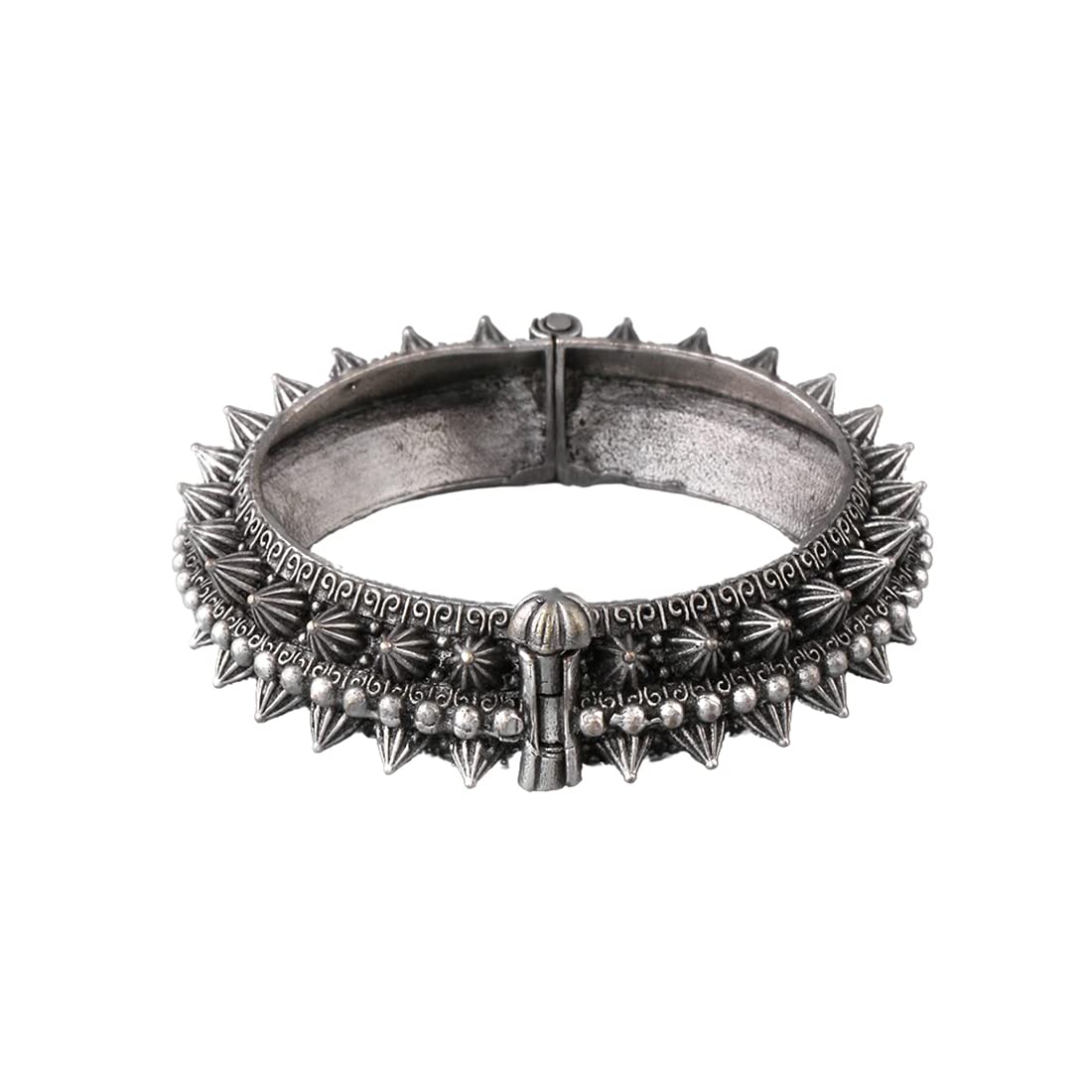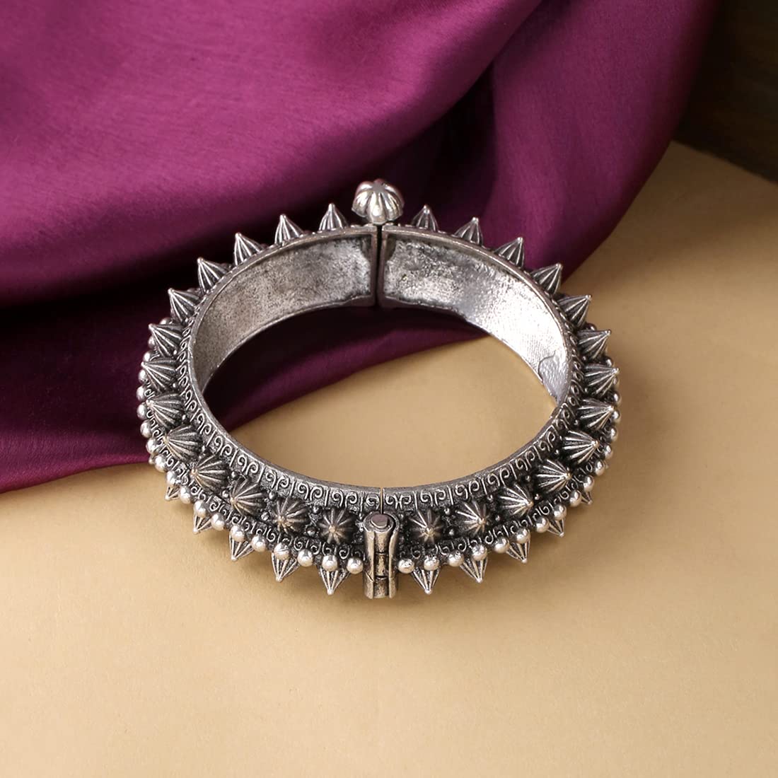 Oxidised Bangle for Women Traditional Oxidised Silver Plated Ethnic Design Openable Bangle for Women and Girls