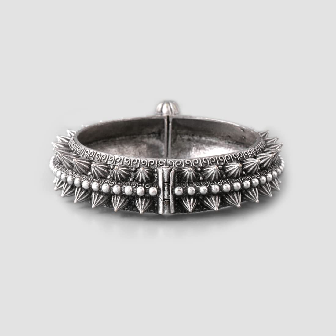 - Ethnic Oxidised Silver wide Bangle in Traditional design Suitable Looks for all Kinds of Occasions- Party / Festival /Wedding.