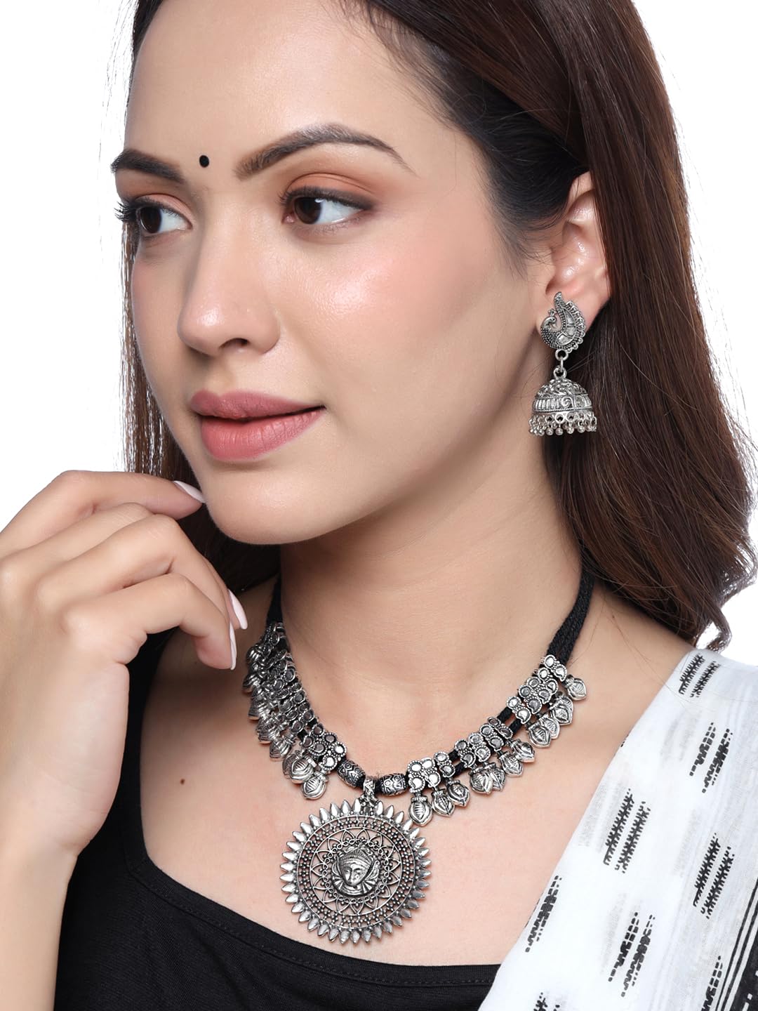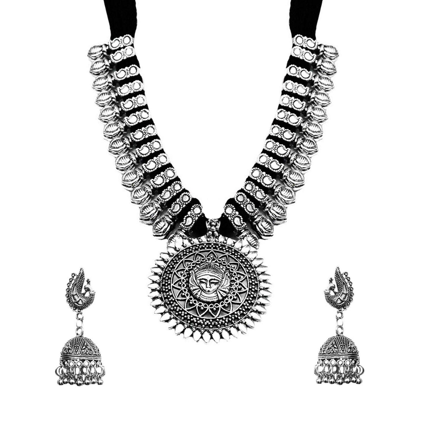 Jewellery Set for Women and Girls Traditional Silver Oxidised Jewellery Set Black Necklace Set for Women Durga Oxidized Necklace Set | Birthday Gift For Girls and Women