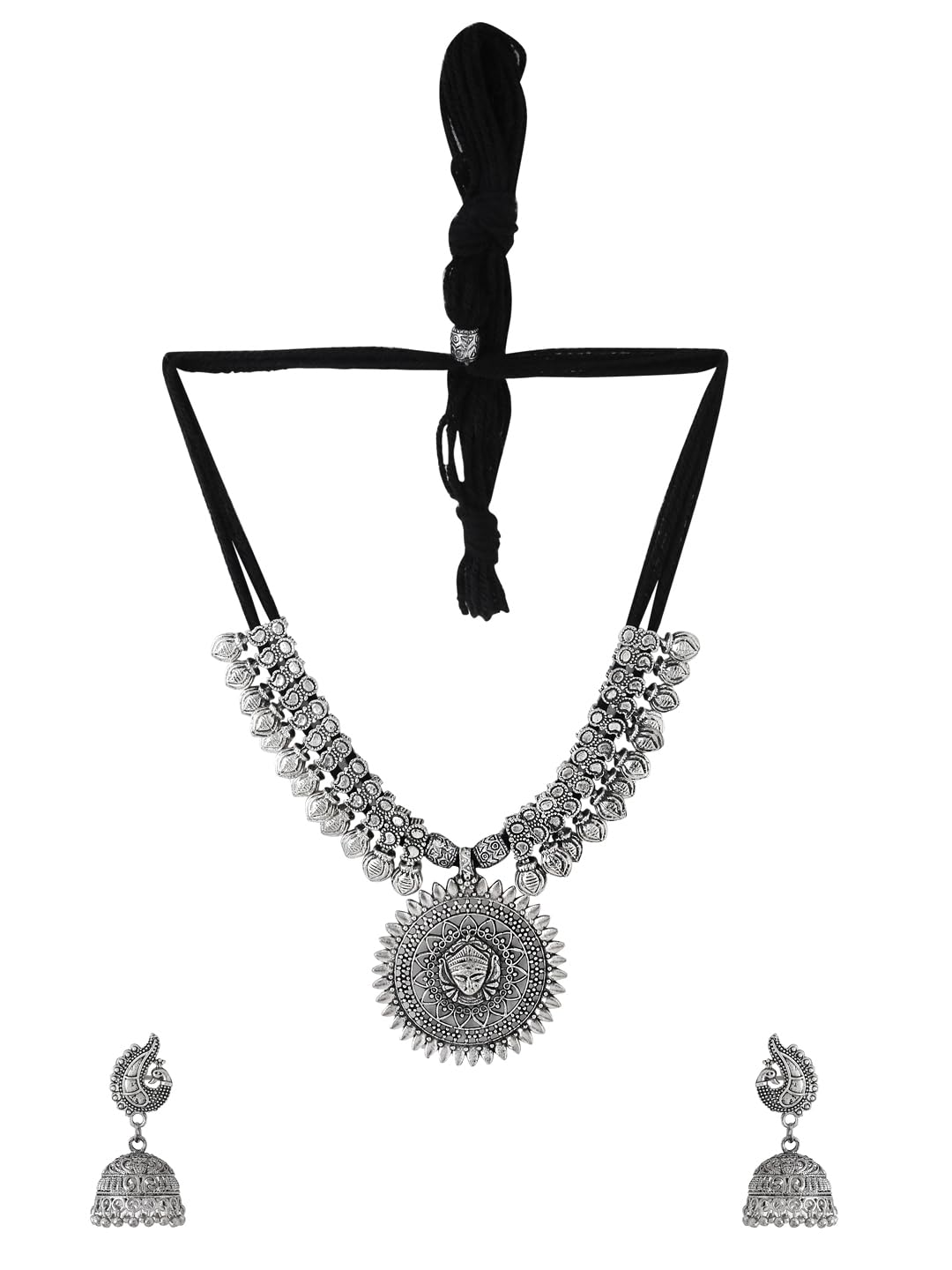 Yellow Chimes Jewellery Set for Women and Girls Traditional Silver Oxidised Jewellery Set Black Necklace Set for Women Durga Oxidized Necklace Set | Birthday Gift For Girls and Women