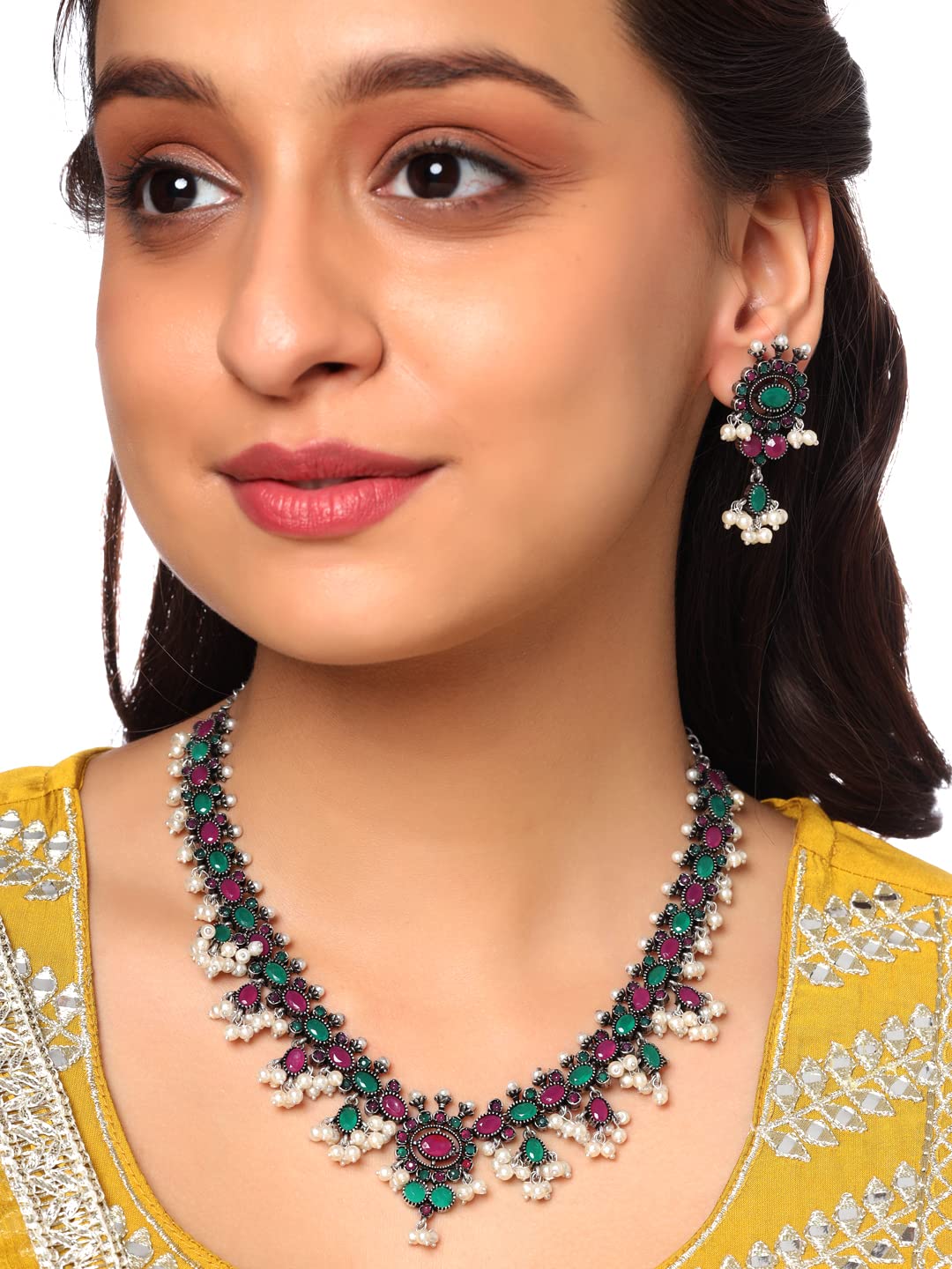 - Luxury And Ethnic Silver Oxidised Jewellery Set Traditional Necklace Set Comes With Comtemporary Design And Light Weight to provide you social confidence and brings a lot of compliments, Preciously Suitable Looks for all Kinds of Occasions- Party / Festival / Wedding