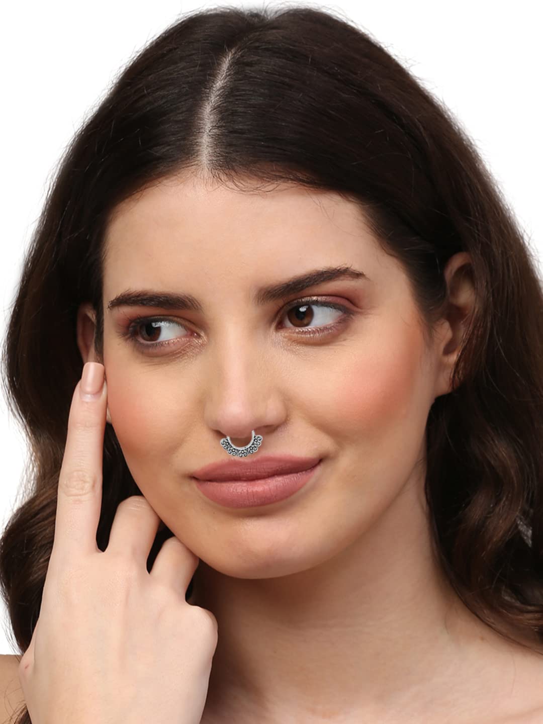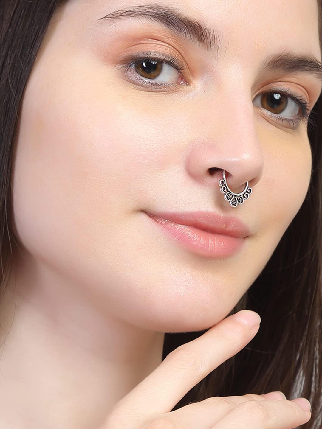 Oxidised Nose Rings for Women 12 PCs Non-Piercing Nose Pins Silver Oxidized Snazzy Nose Rings/Nose Studs/Septum For Women and Girls.