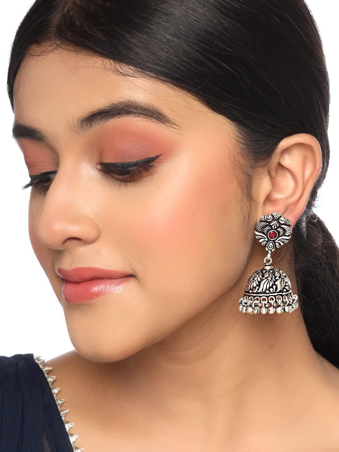 Yellow Chimes Oxidised Silver Jhumki Earrings For Women Silver Oxidised Jhumka Traditional Kolhapuri Jhumka Earrings For Women and Girls