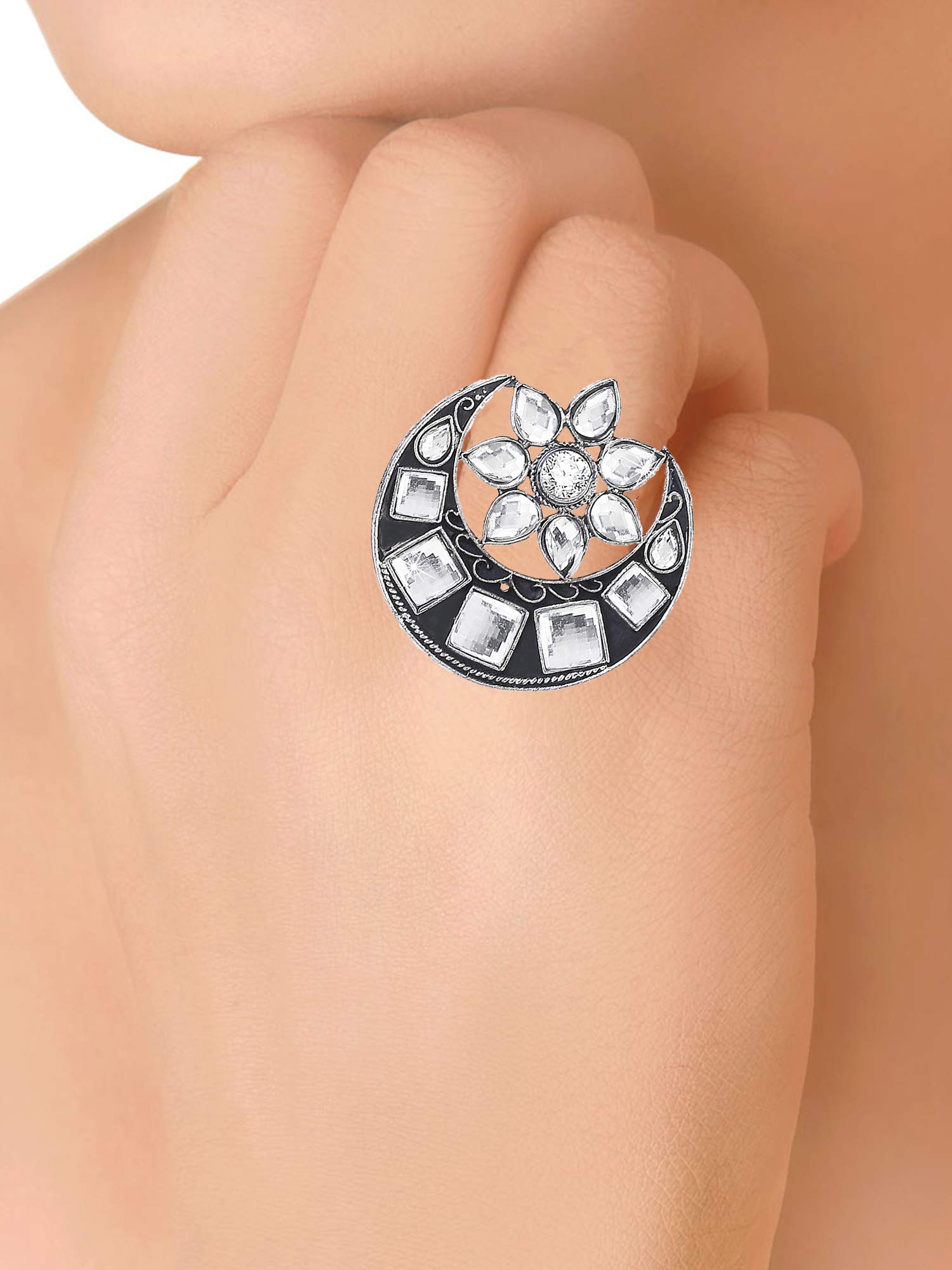 Oxidized Silver Traditional Earrings Adjustable Ring Combo for Women and Girls (Nude)