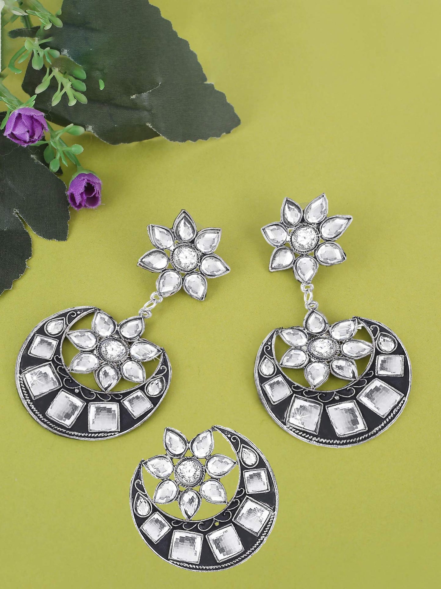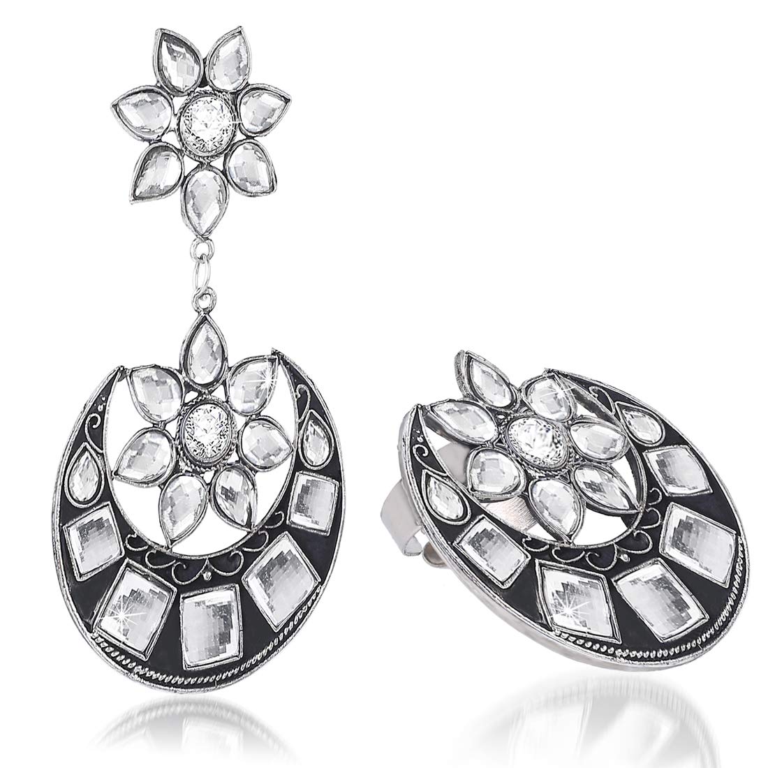 - Latest Trend Stone Style German Silver Oxidized Earrings and Finger Ring Combo in contemporary Fusion - Danglers that can add charms on all Occasions, with any outfit.