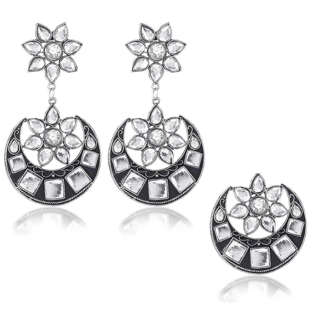 Yellow Chimes Oxidized Silver Traditional Earrings Adjustable Ring Combo for Women and Girls (Nude)