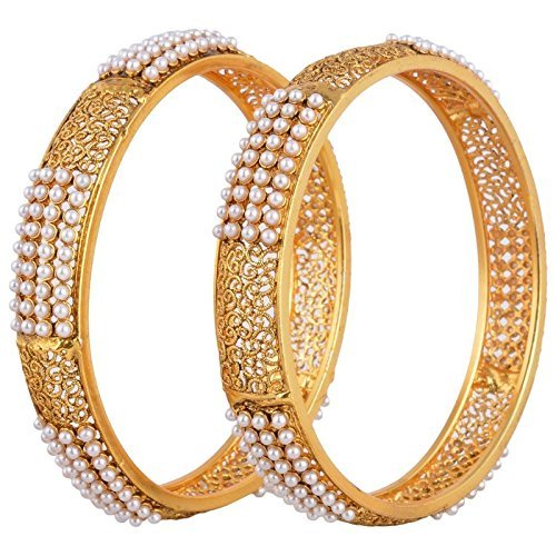 Yellow Chimes Pair of 2 Exclusive Broad Hand Crafted Pearl Antique Designer Traditional Bangles for Women