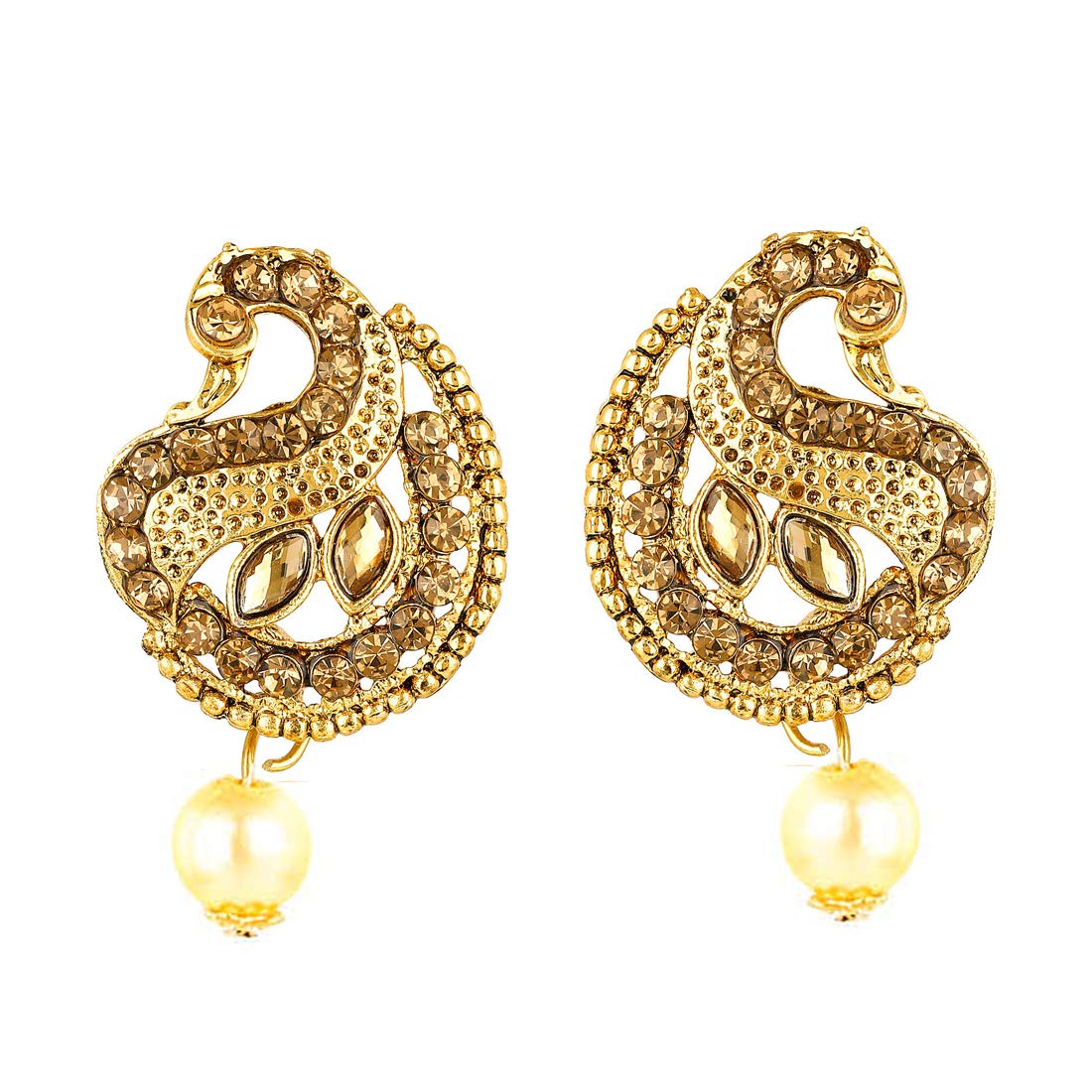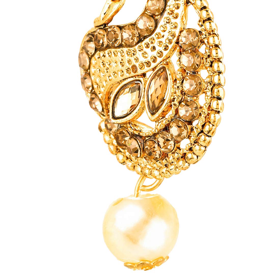 Yellow Chimes Peacock Design Kundan Studded Gold Plated Jewellery Set Pearl Mala Pendant Set for Women and Girls