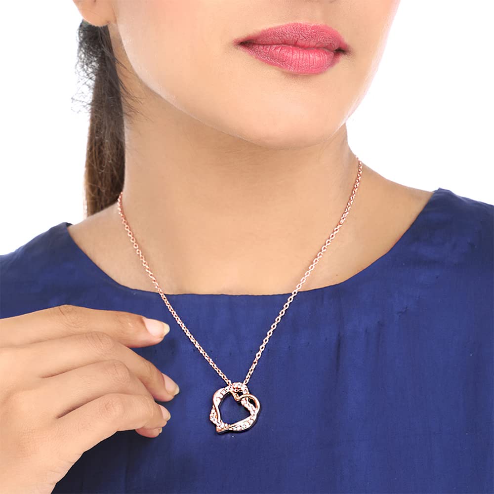 - BEAUTY- Two Hearts Becoming One and reaching to the heights of Love in a sparkling way with this high grade Austrian Crystal Pendant. The Golden hearts are elegant and sleek, formed to entangle perfectly. The Pendant gets its better look when worn by a Lovely girl. Matches with all attire, and nice piece to flaunt.