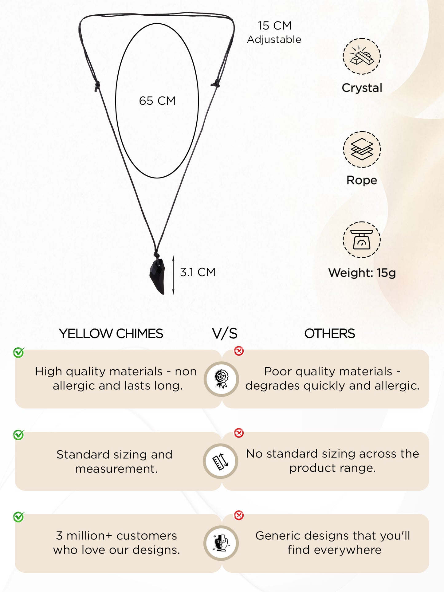 - Perfect Dimensions: With a pendant size of 3 x 1.3 cm and a rope length of 80 cm, it hangs gracefully and highlights the slender outline of your neck.