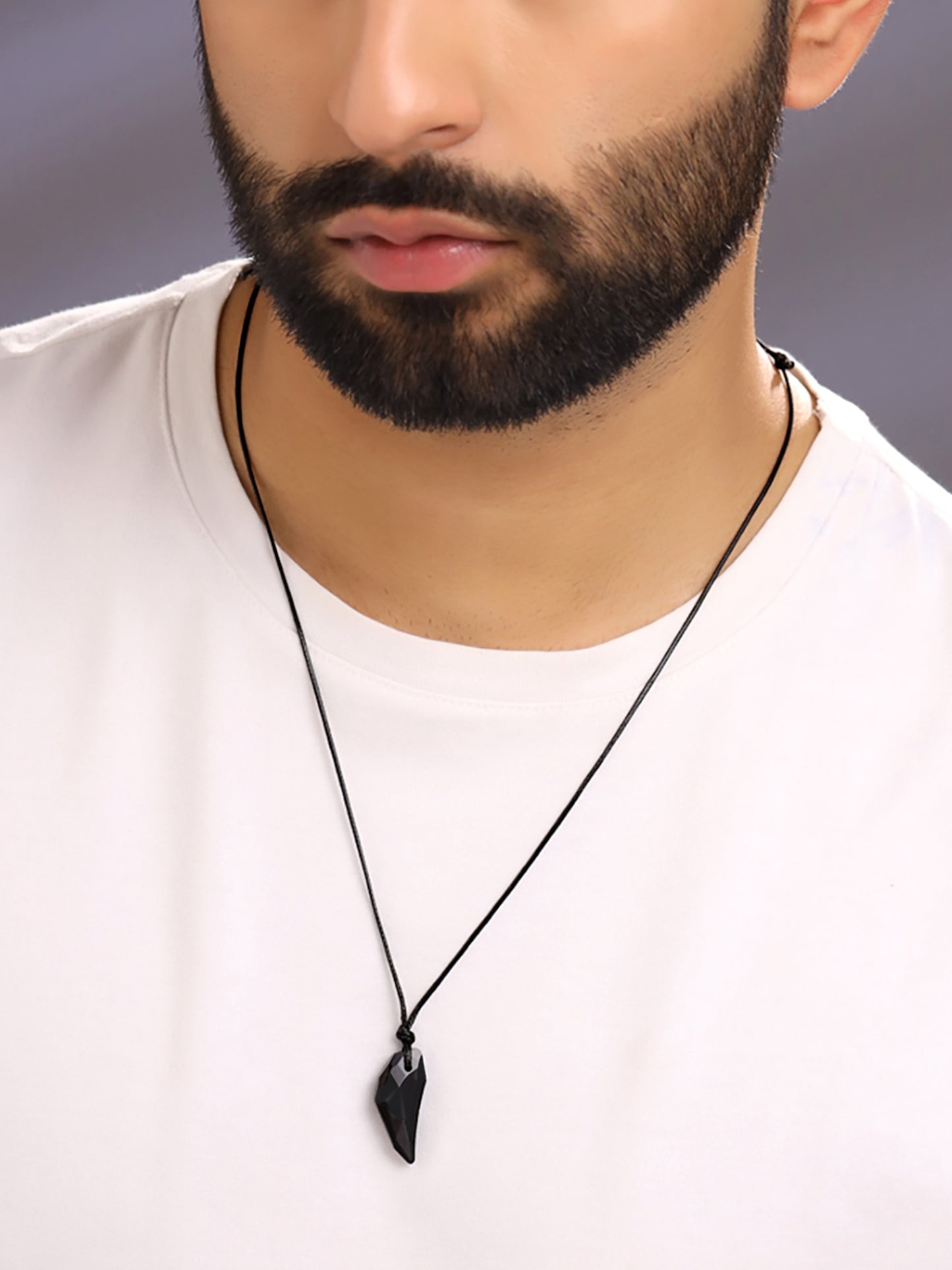 Pendant for Men Black Men Pendant Crystal Adjustable Black Leather Rope Pendant for Men and Women.