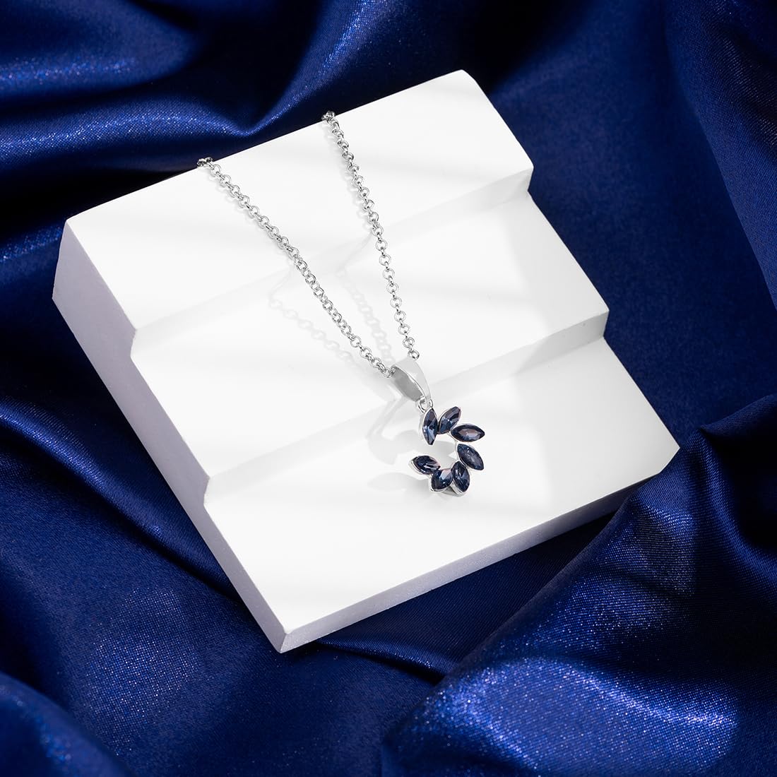 Pendant for Women and Girls Crystal Pendant for Women Blue Floral Designed Charm Pendant Birthday Gift for girls and women Anniversary Gift for Wife