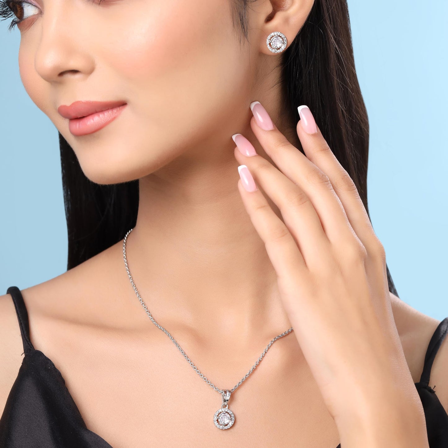 Pendant for Women and Girls Crystal Pendant for Women | White Stone Studded Crystal Pendent Set | Birthday Gift for girls and women Anniversary Gift for Wife
