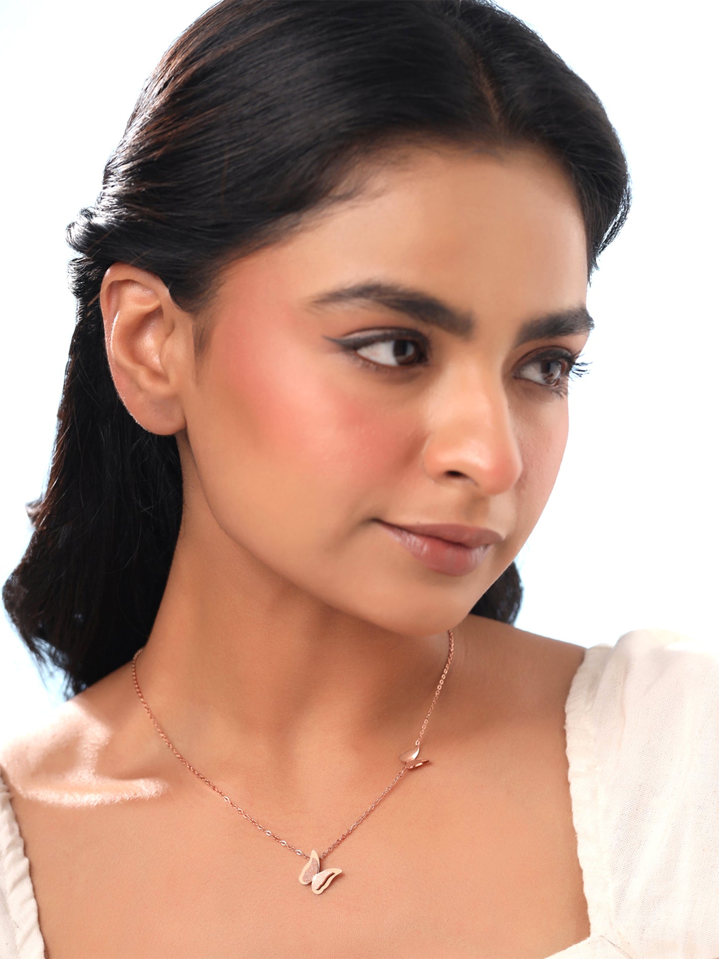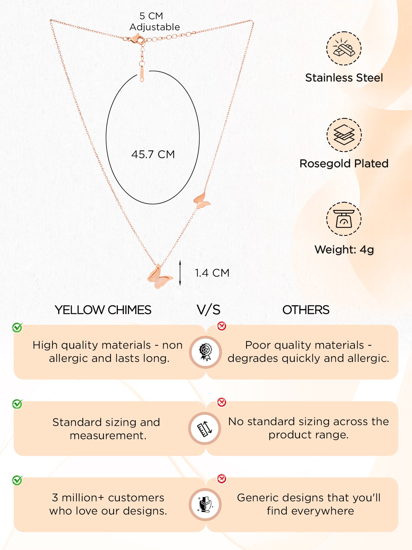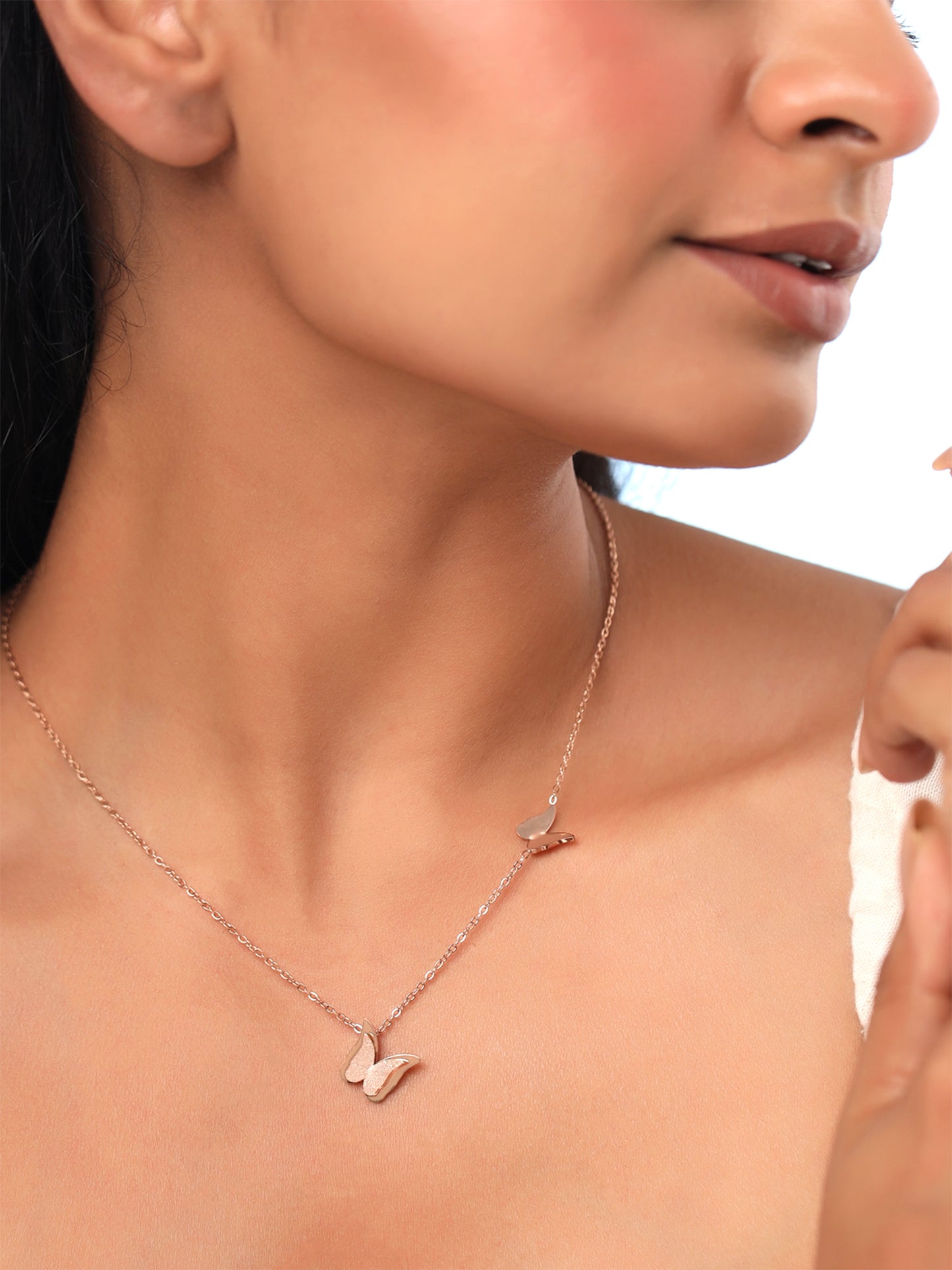 Pendant for Women and Girls | Rose Gold Pendant Necklace for Women Western | Stainless Steel Butterfly Shaped Long Chain Pendants | Accessories Jewellery for Women | Birthday Gift for Girls and Women Anniversary Gift for Wife