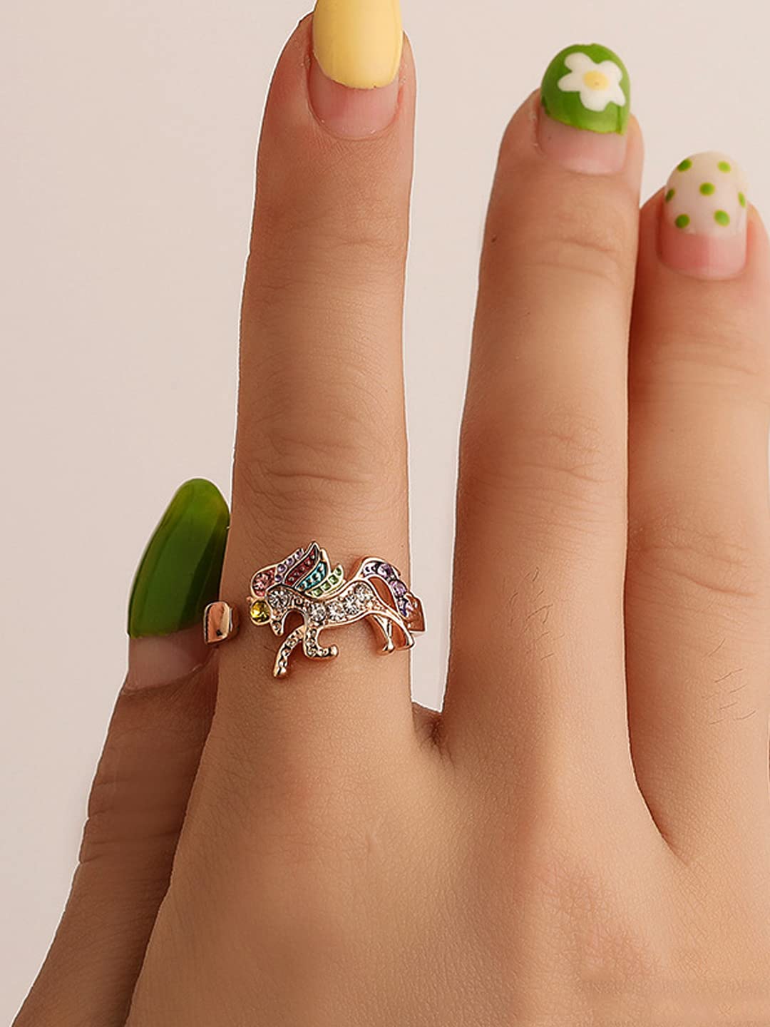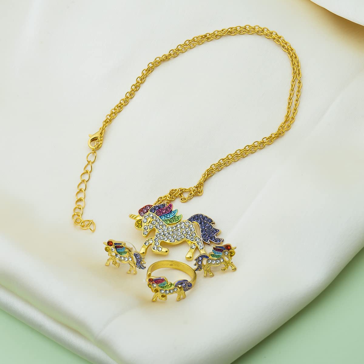 Melbees by Yellow Chimes Pendant Set For Women Gold Toned Multicolor Stone Studded Unicorn Pendant Set With Ring and BraceletFor Girls and Kids