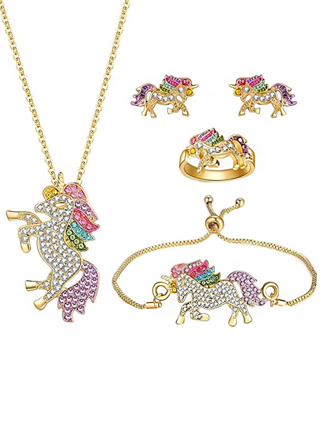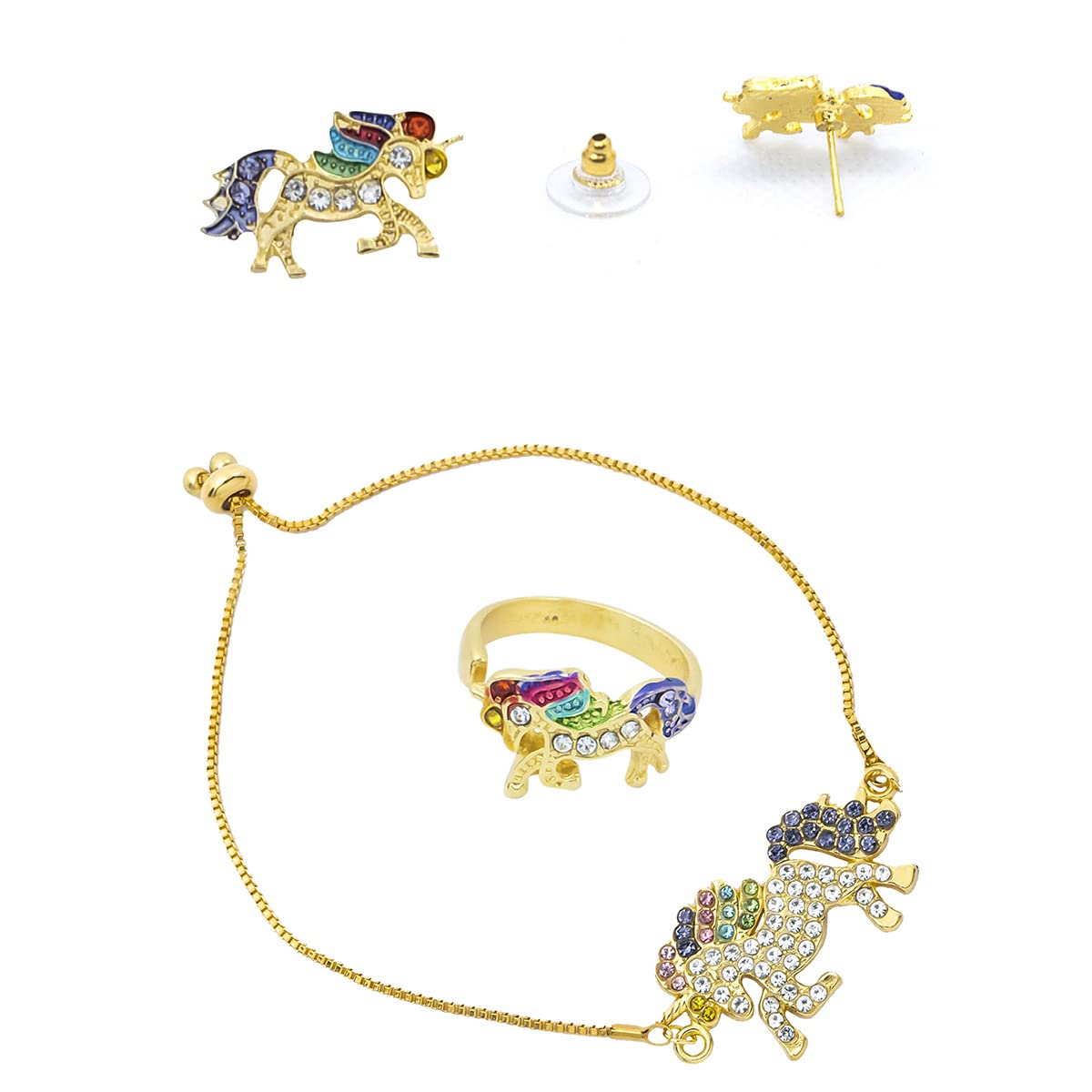 Melbees by Pendant Set For Women Gold Toned Multicolor Stone Studded Unicorn Pendant Set With Ring and BraceletFor Girls and Kids