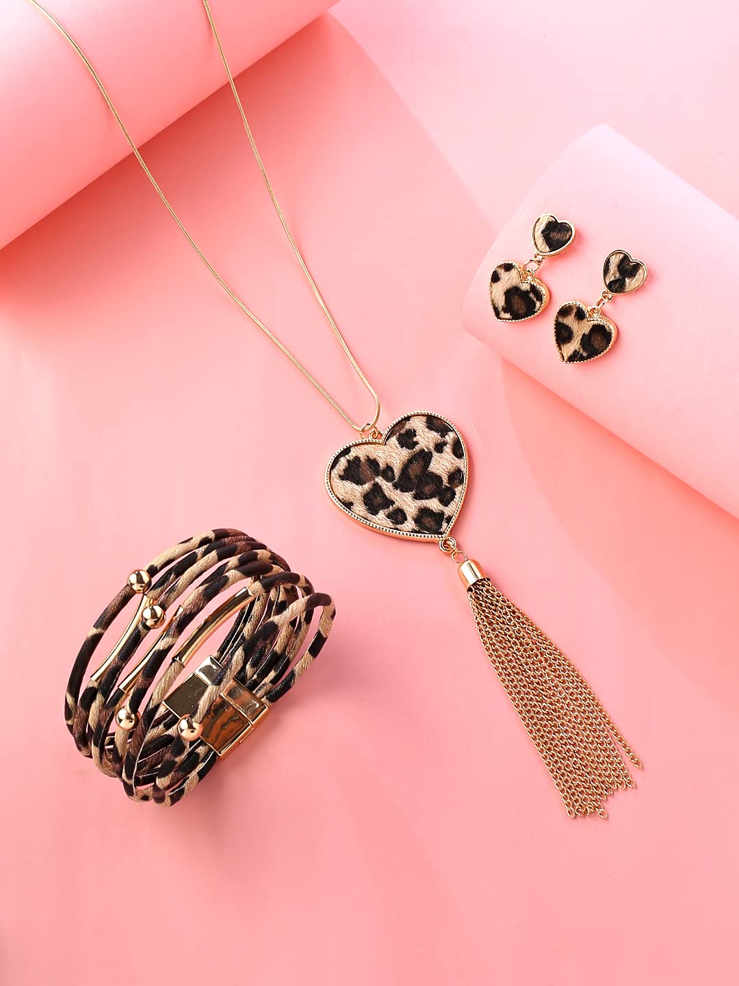 Yellow Chimes Pendant for Women and Girls Fashion Long Chain Pendant Set for Women | Gold Plated Heart Pendent Necklace Set with Earrings | Birthday Gift for Girls and Women This beautiful leopard jewelry sets for women are the ideal jewelry accessories for women, you can be styled with the daily dress, evening dress, leather jacket, trench coat, short sleeves, jeans and other clothes, charming and stylish jewelry for wonderful you. Pendant L=42CM CHARM L=12.5CM W=4CM bracelet L=19CM W= 2.5CM earrings L=3.3CM W=1.6CM. Care Instructions: Wipe with Soft Cloth after every use. Keep away from Water, sprays or perfumes. Try to store your jewellery in a flat box to avoid accidental scratches. Packaging- Your favorite piece of Jewellery will reach you in an Elegant Yellow Chimes box with safety and precautions. You can leave it to us the job of delivering your Jewellery in original condition to you at your door-step. Brand Vision - Yellow Chimes is the one stop solution for all jewellery lovers- which is affordable and can fit for any occasion you pick to shape your own style and personality.