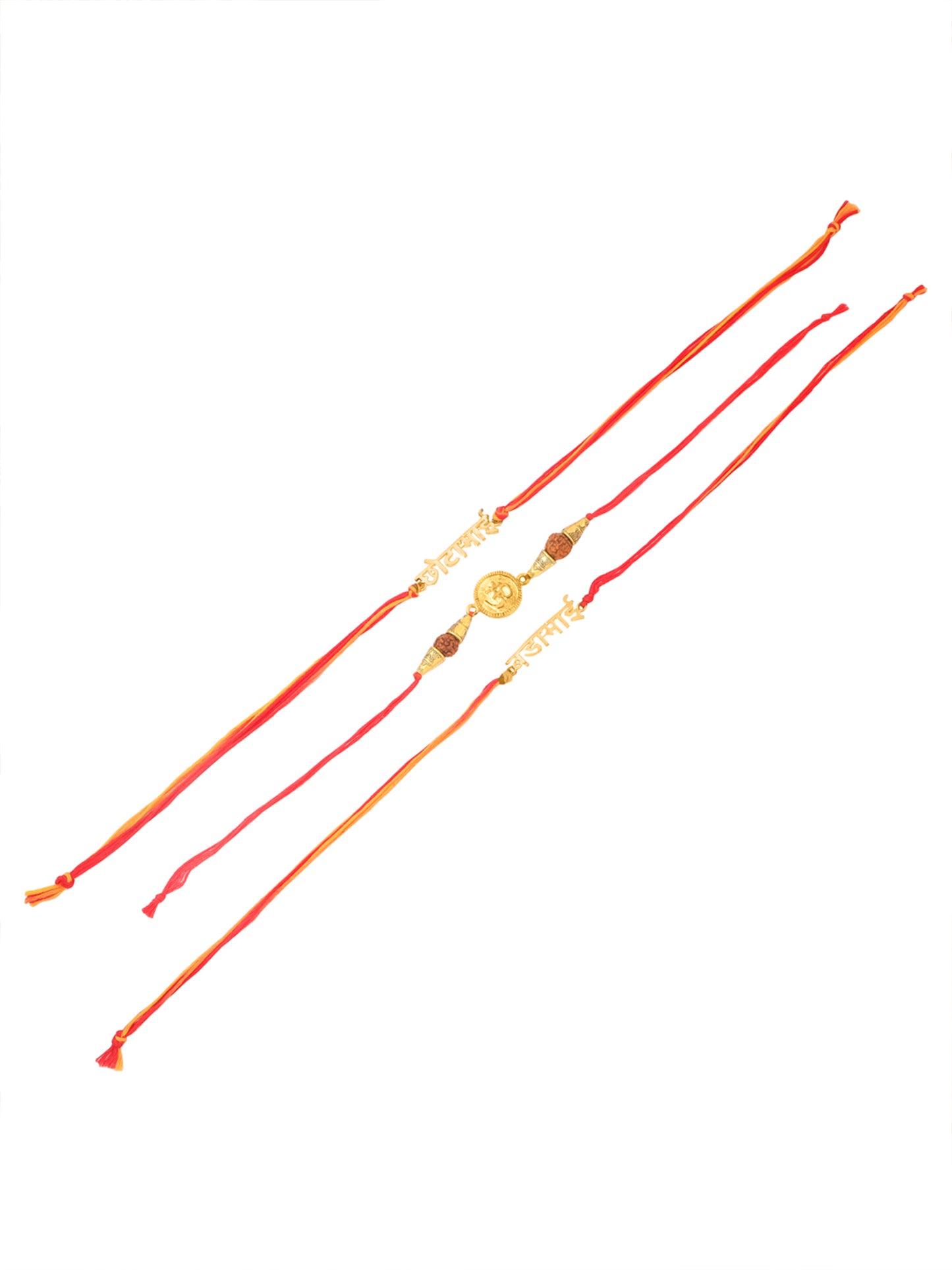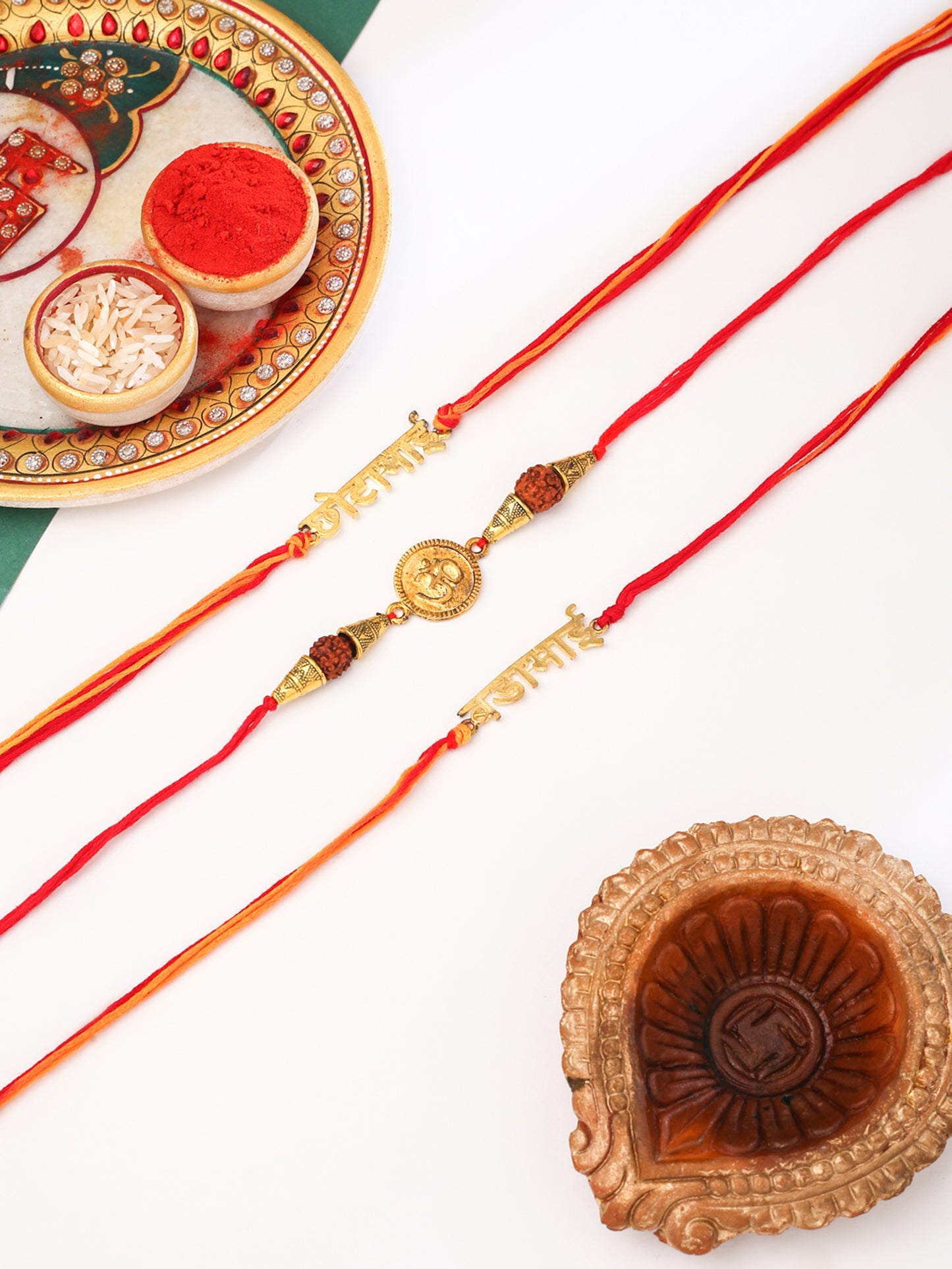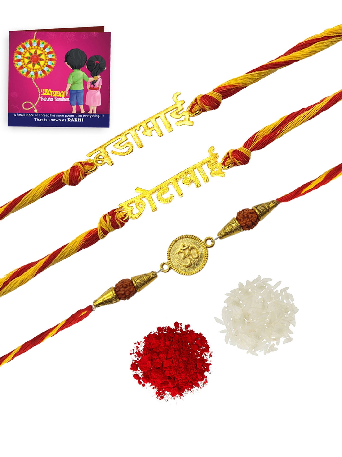 Rakhi for Brother | Combo of 3 Rakhi Set for Brother | Traditional Gold Plated Rakhi Set for Brother and Sister| Rakhi with Roli, Chawal and Greeting Card