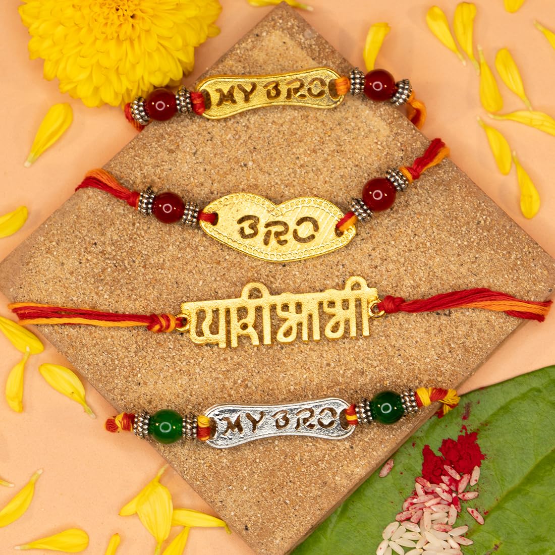 - Four Beautifully Crafted Rakhis: Each Rakhi is designed to celebrate the unique bond between brothers and sisters.