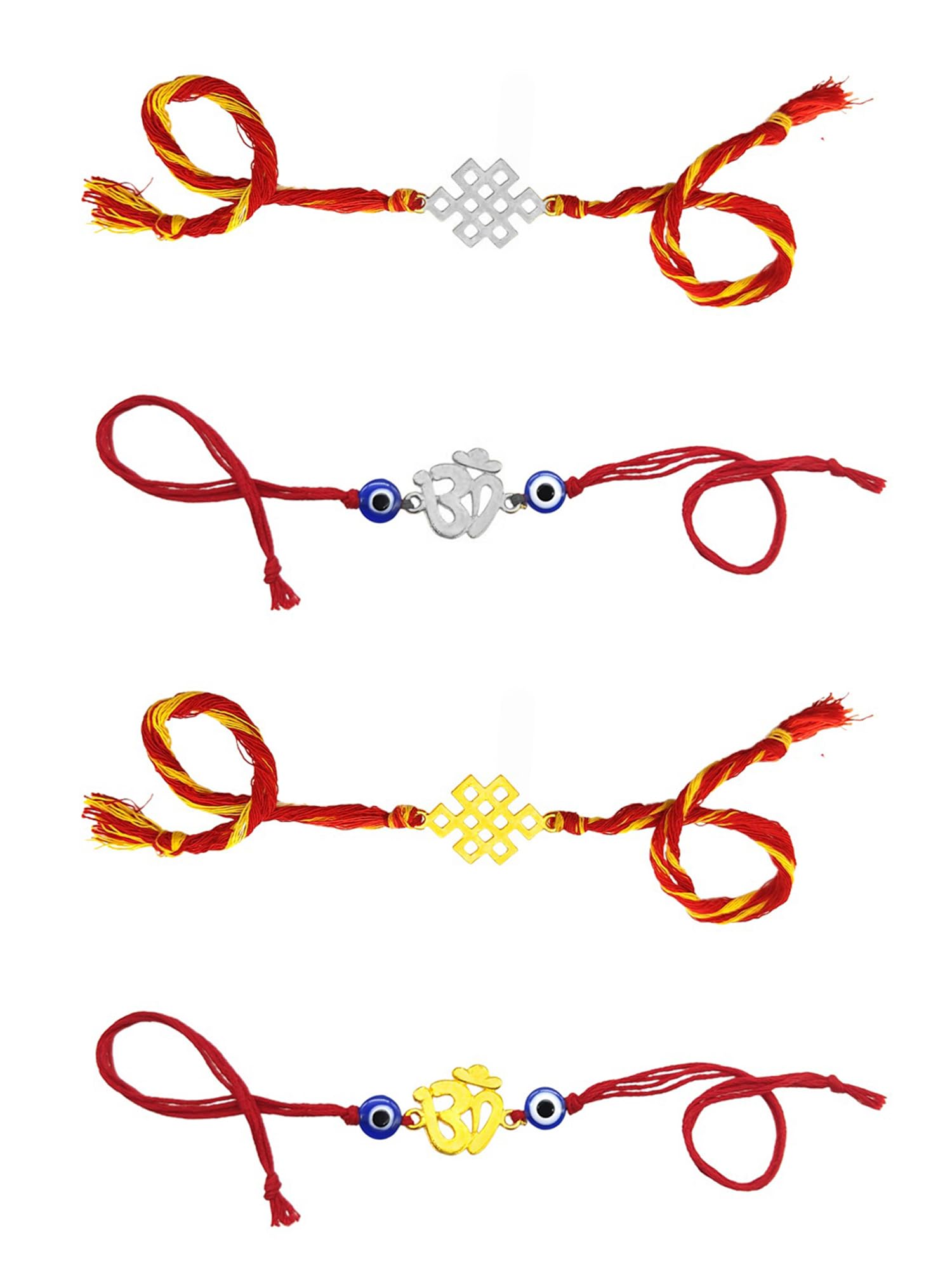 - Rakhi Combo: This combo includes four beautifully crafted Rakhi for brother and essential accessories like roli, chawal, and a free greeting card. The rakhi combo includes OM rakhi set