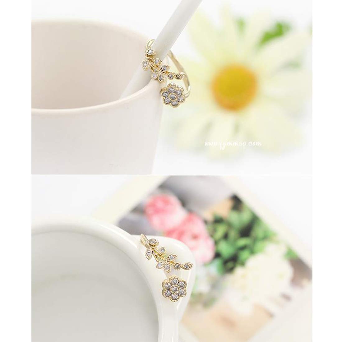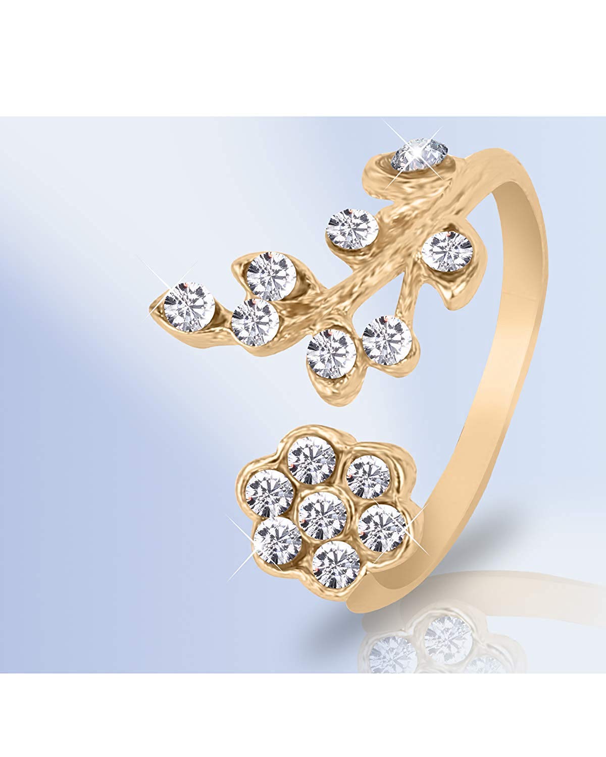 Rhinestone Twisted Leaves Flower Opening Gold Plated Rings For Women and Girl's(Adjustable)