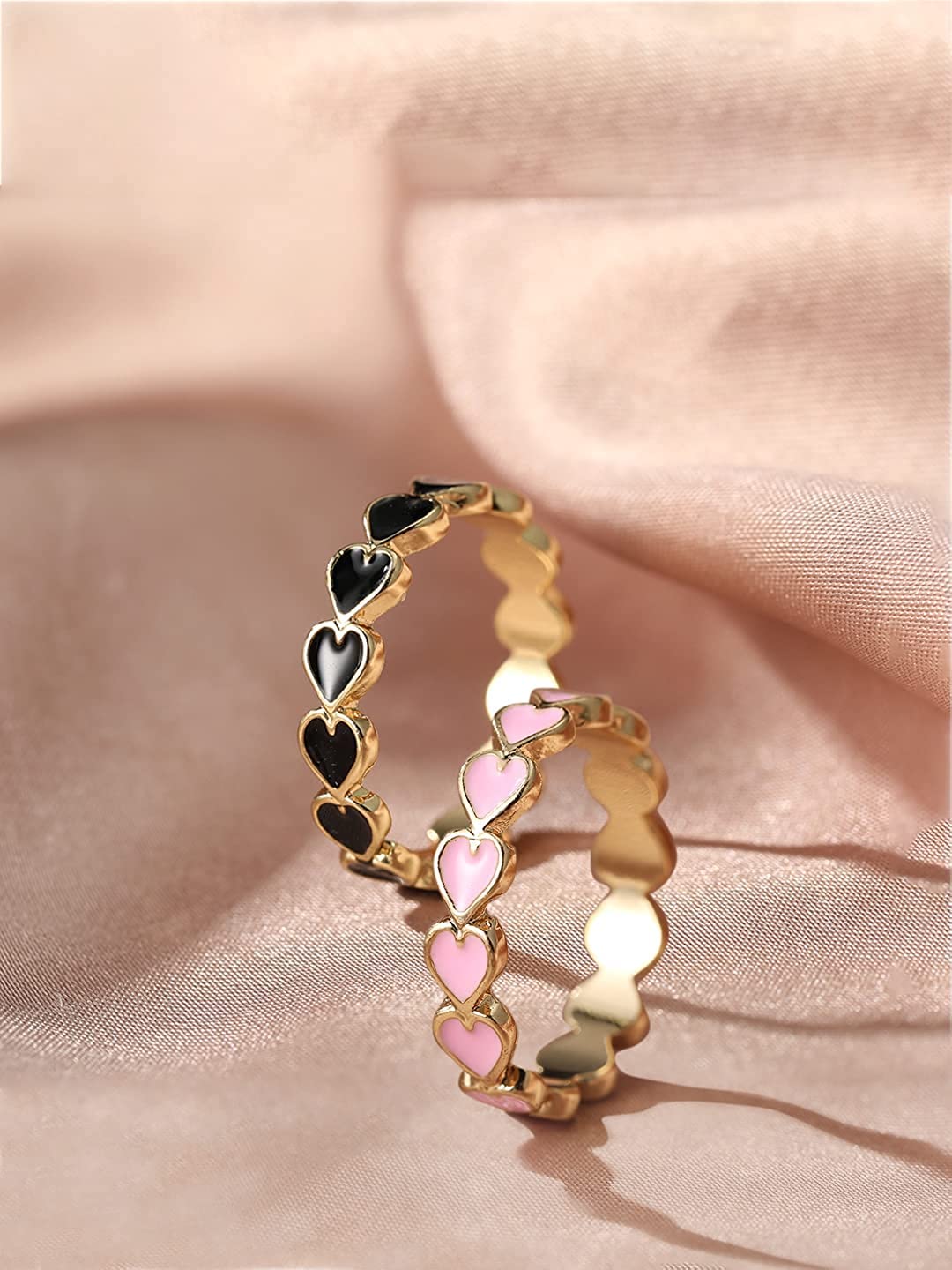 Yellow Chimes Ring For Women Combo Of 2 Pcs Black and Pink Heart Shape Designed Ring For Women and Girls