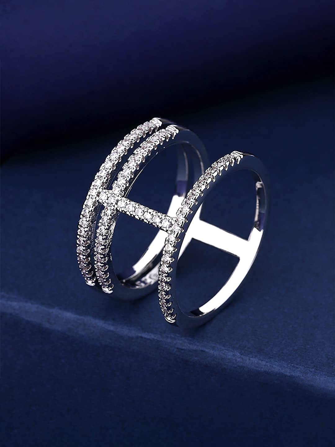 - Glamorous sparkling Party Wear adjustable Diamond Ring in Silver tone. Their rich looks can be matched with any Accessories and attire, even one pair are enough to bring in limelight.