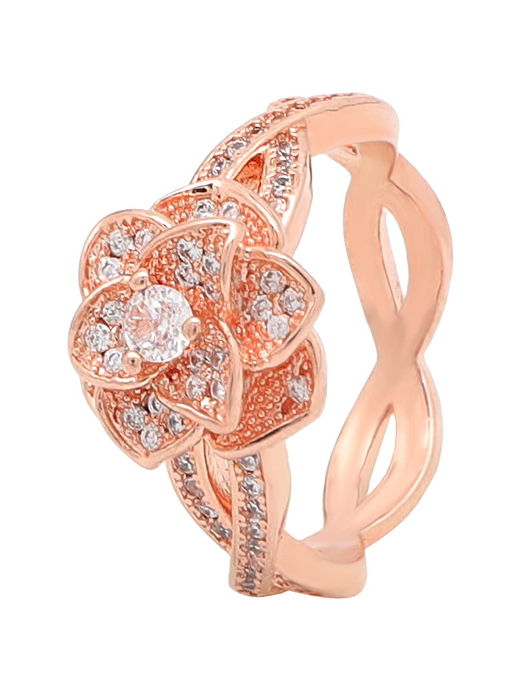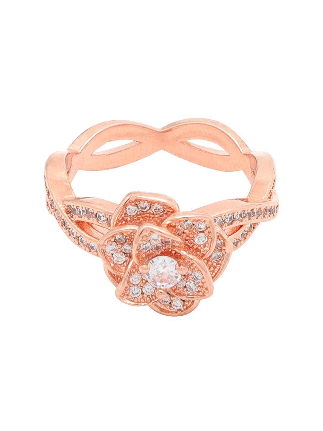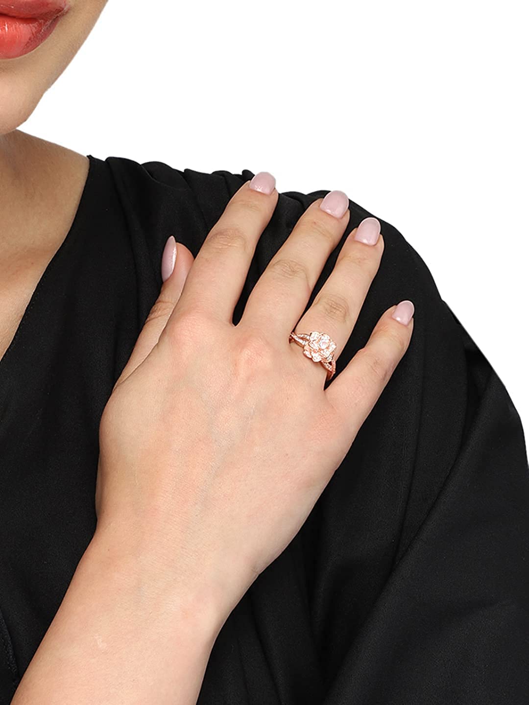 Ring for Women Rose Gold Toned Crystal Studded Floral Designed Ring for Women and Girls (Size US 6)