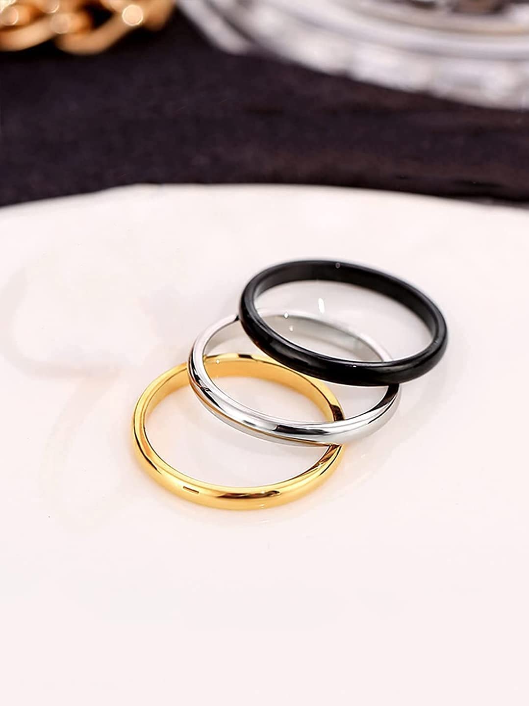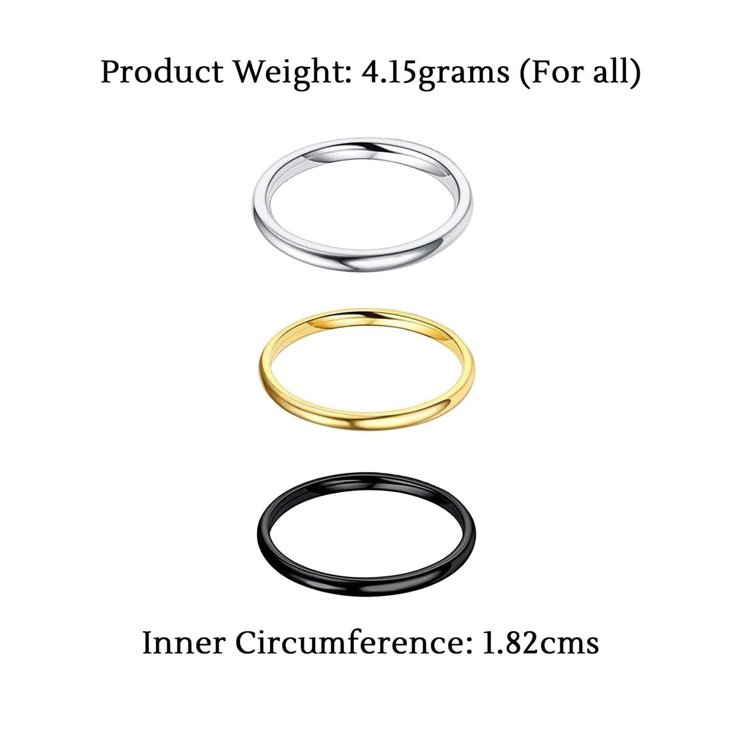 Yellow Chimes Ring for Women Set of 3 Plain Gold Silver and Black Band Designed Ring for Women and Girls(Size US 6)