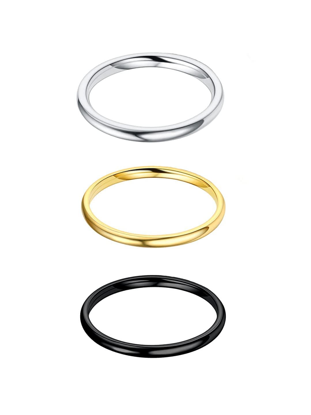 Ring for Women Set of 3 Plain Gold Silver and Black Band Designed Ring for Women and Girls(Size US 6)
