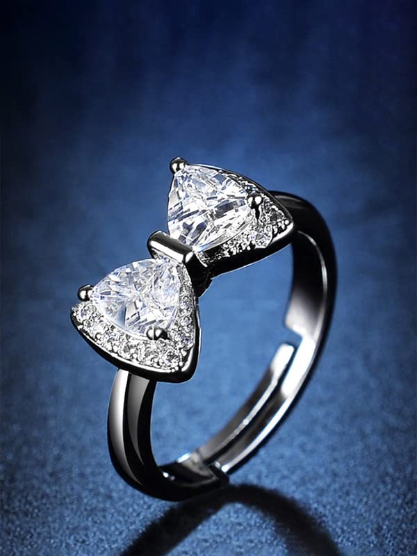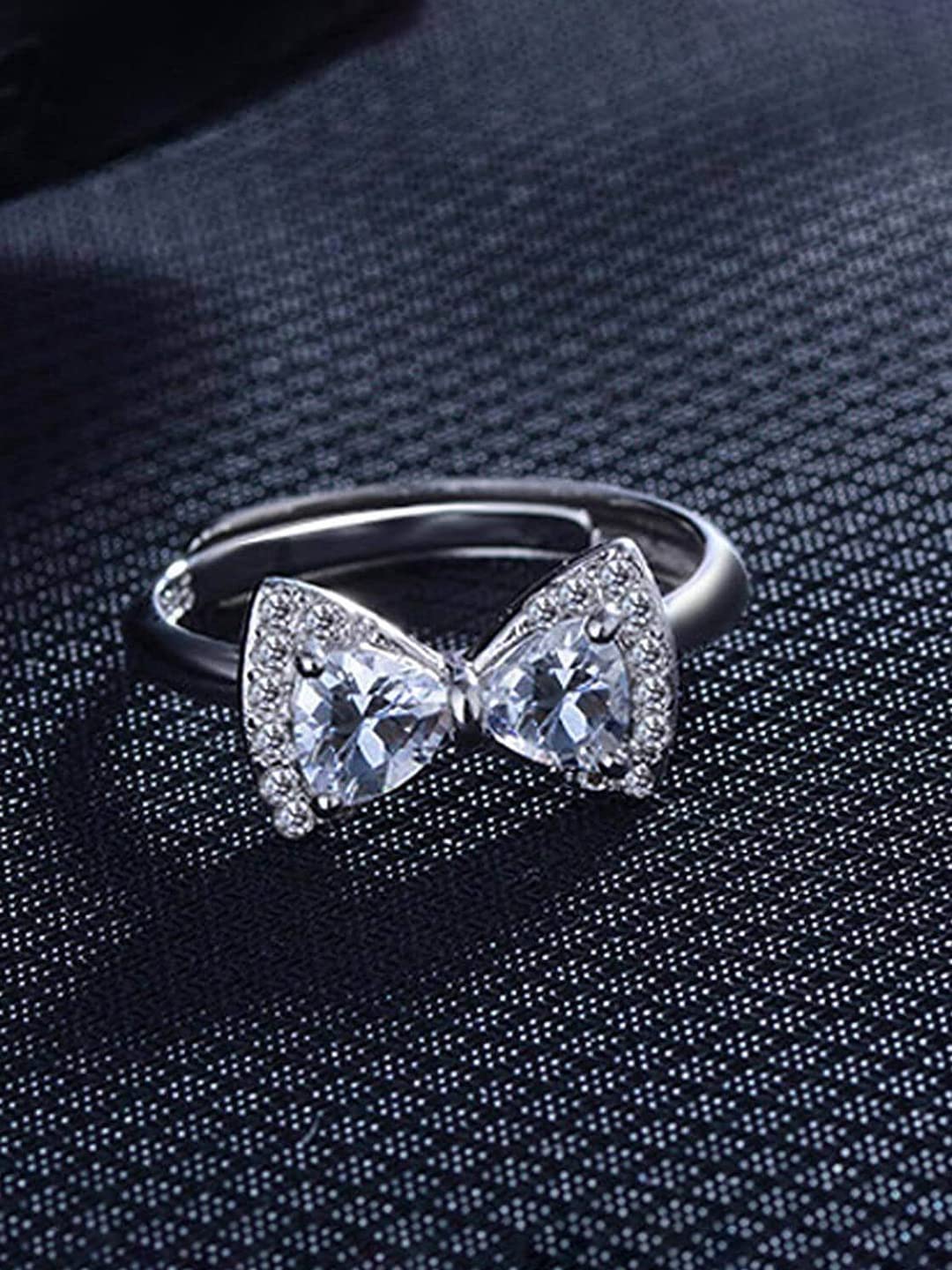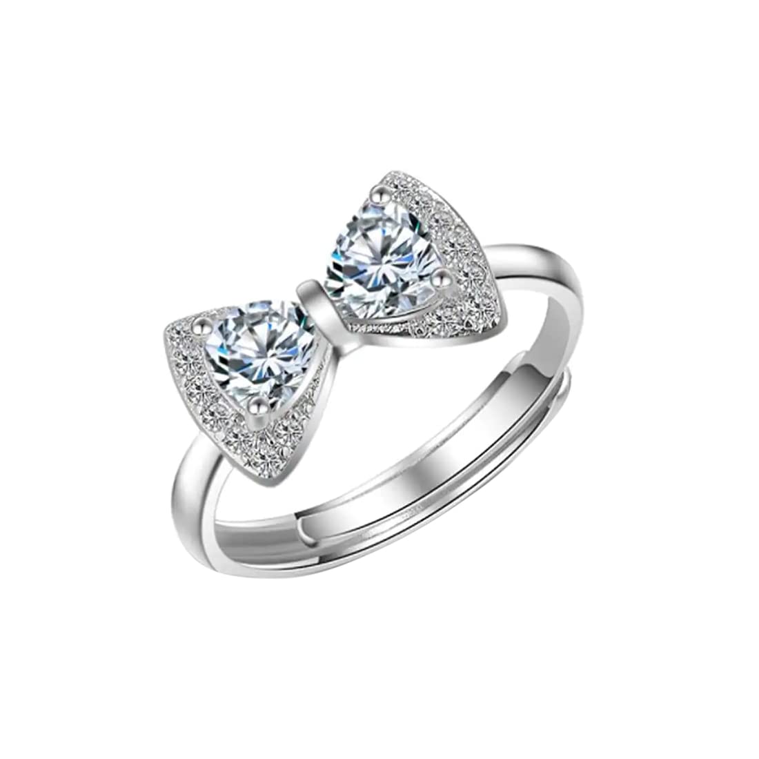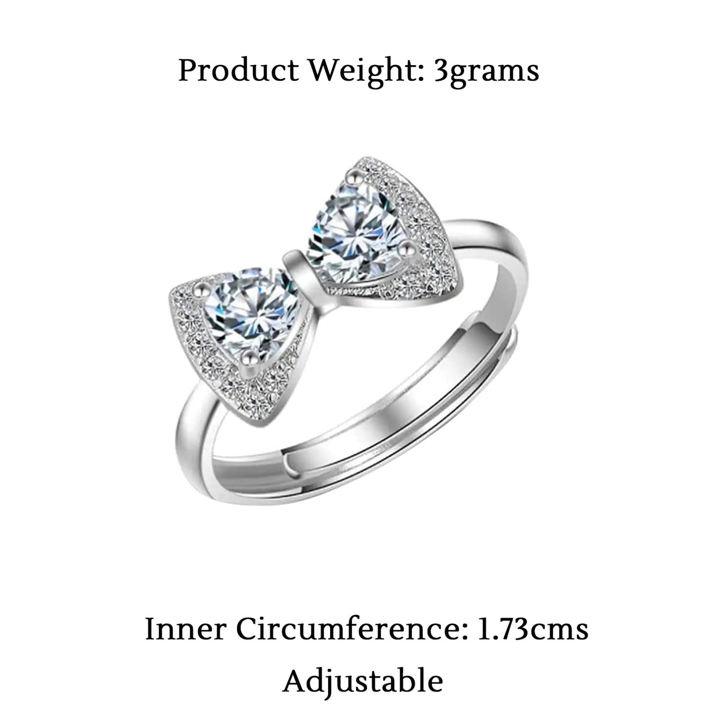 Rings for Women and Girls Silver Ring | Adjustable Crystal Rings | Silver Toned Bow Shaped Finger Ring for Women | Birthday Gift For girls and women Anniversary Gift for Wife.