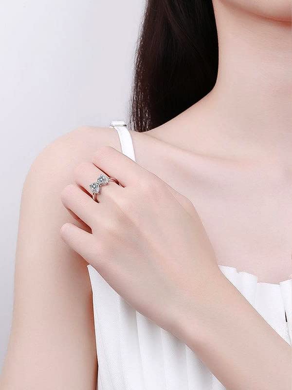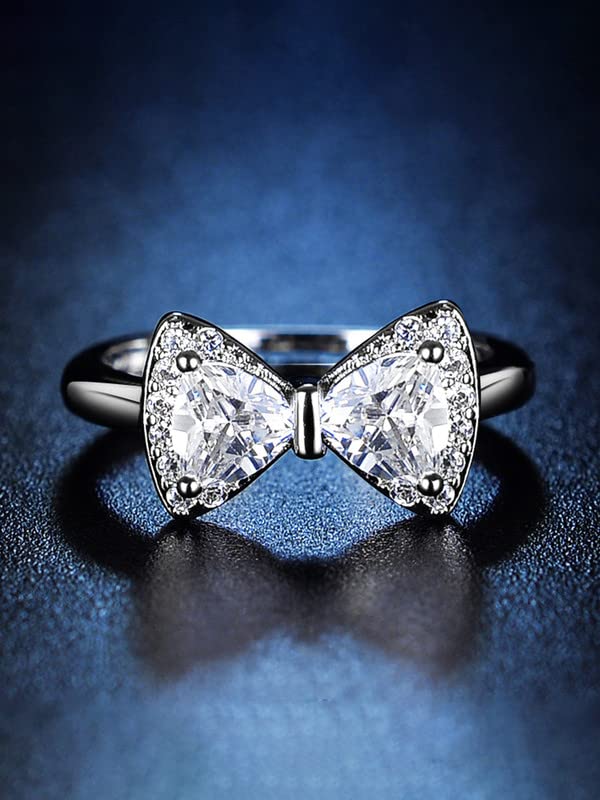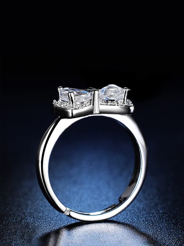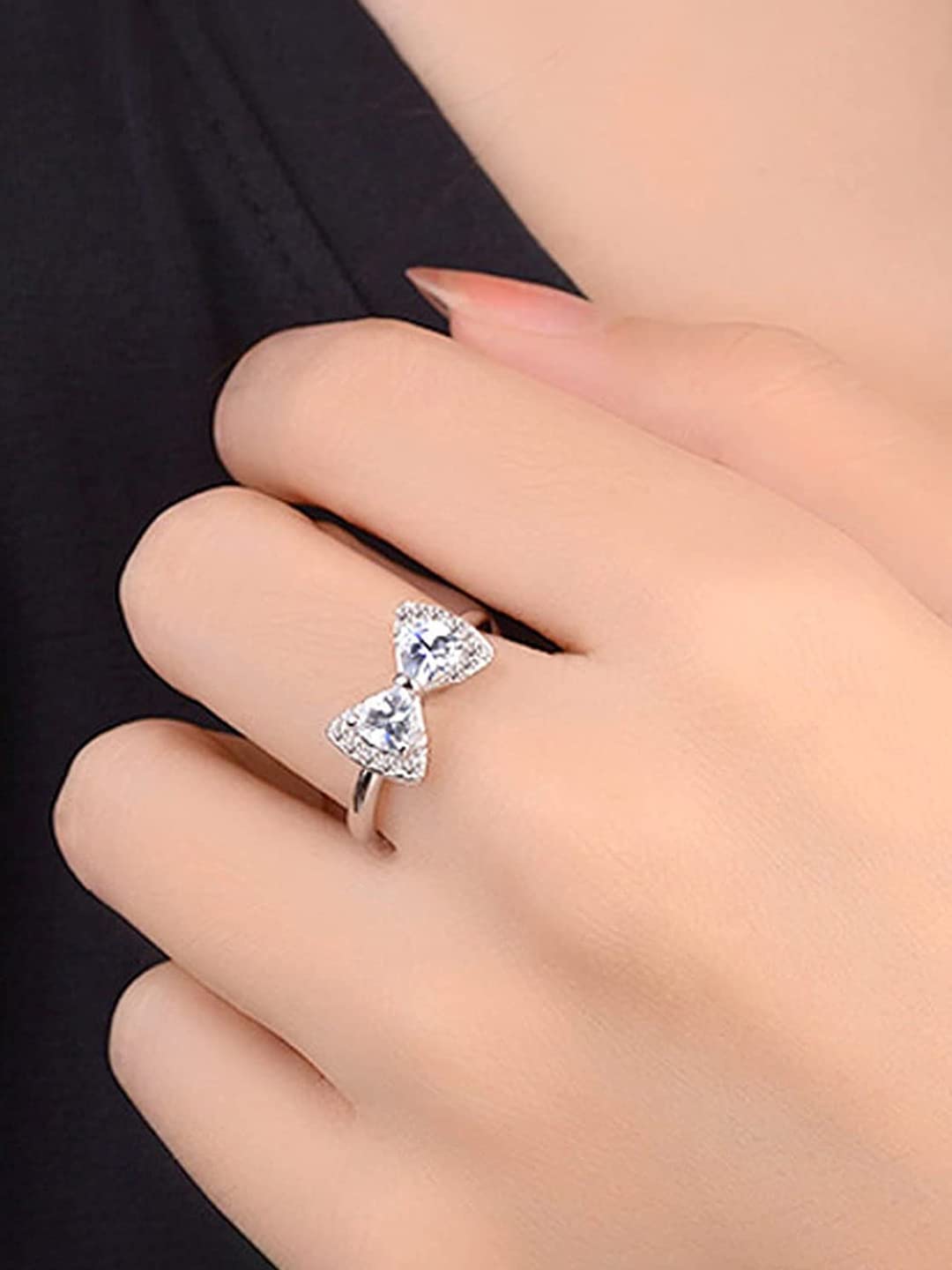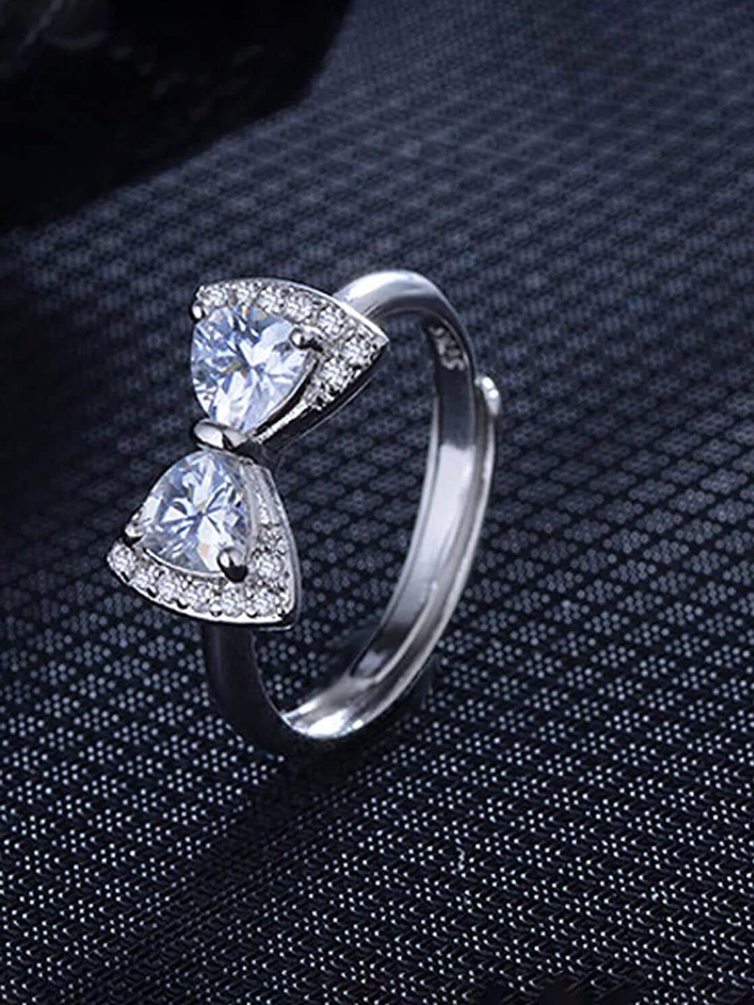 Rings for Women and Girls Silver Ring | Adjustable Crystal Rings | Silver Toned Bow Shaped Finger Ring for Women | Birthday Gift For girls and women Anniversary Gift for Wife.