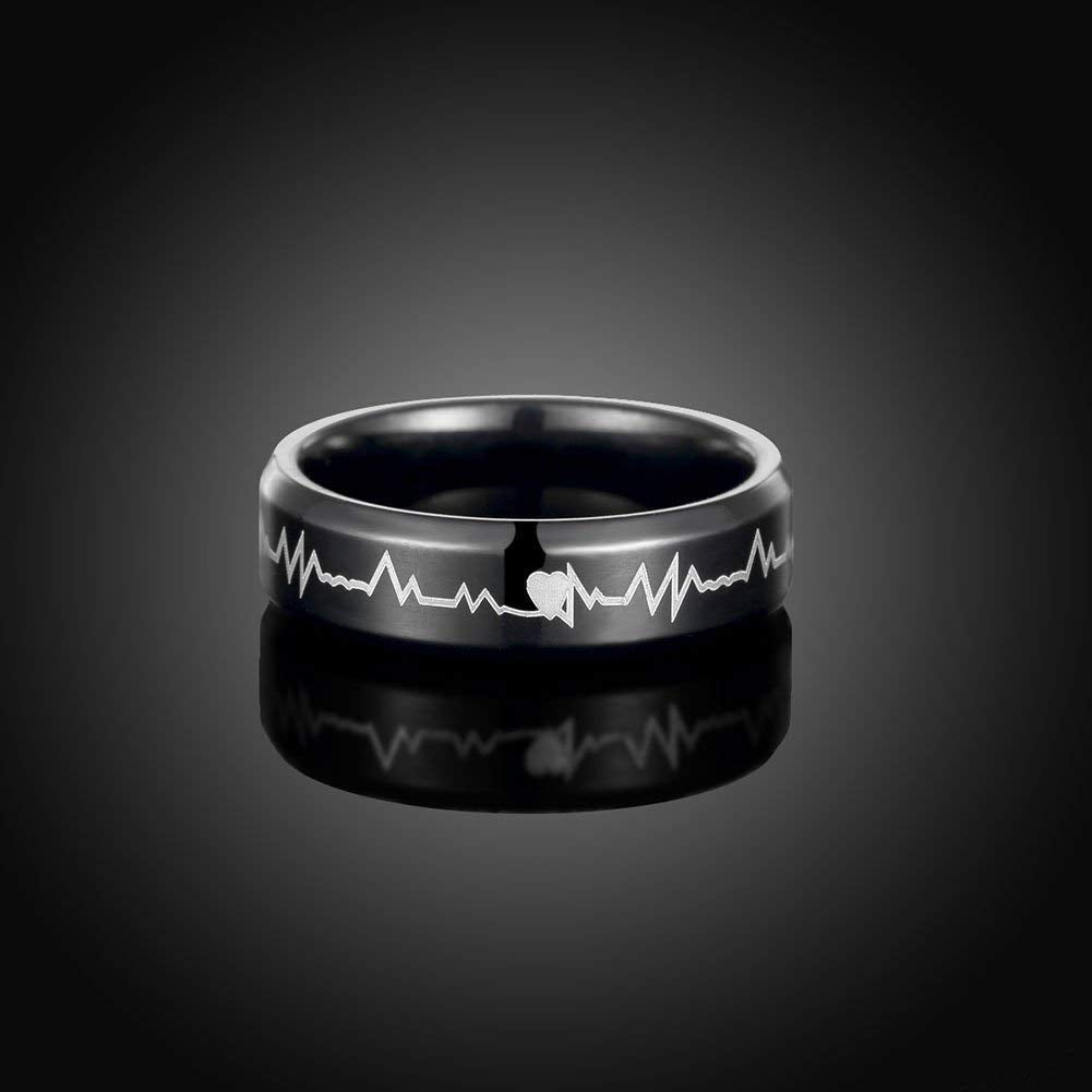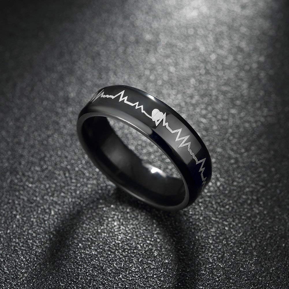 - Combo 2 Pcs Classic, Weighty and Durable, Engraved Heartbeat Love Message,Blue Strips band ring excellent scratch resistant performance. suitable for Men & Women / Unisex / Girls. Daily / Party / Casual Wear Fashion Jewellery