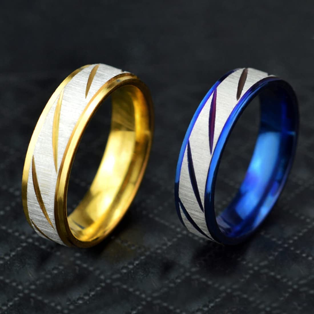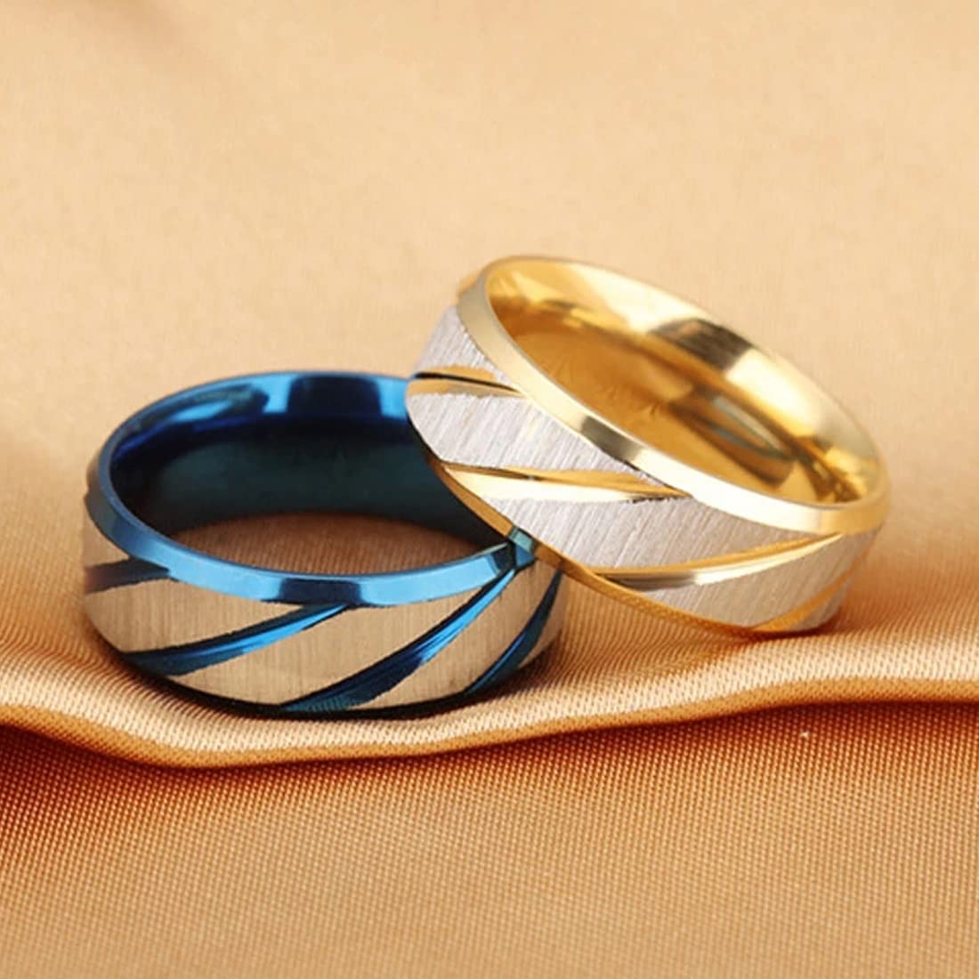 Yellow Chimes Rings for Men 2 pcs combo Blue and Gold Stylish Western Stainless Steel Metal band Designed Rings for men and boys